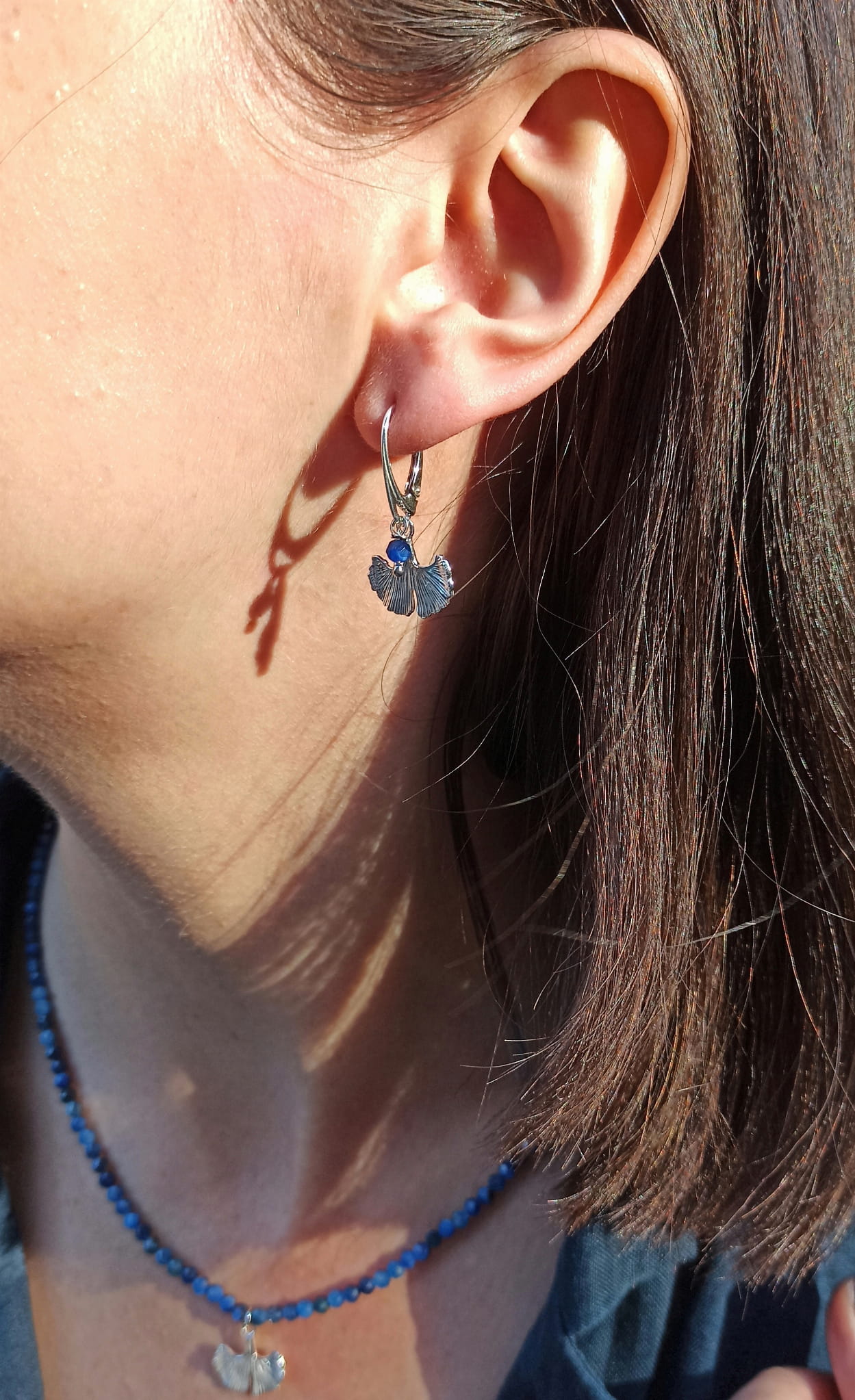 Kolczyki kyanit i liść miłorzębu