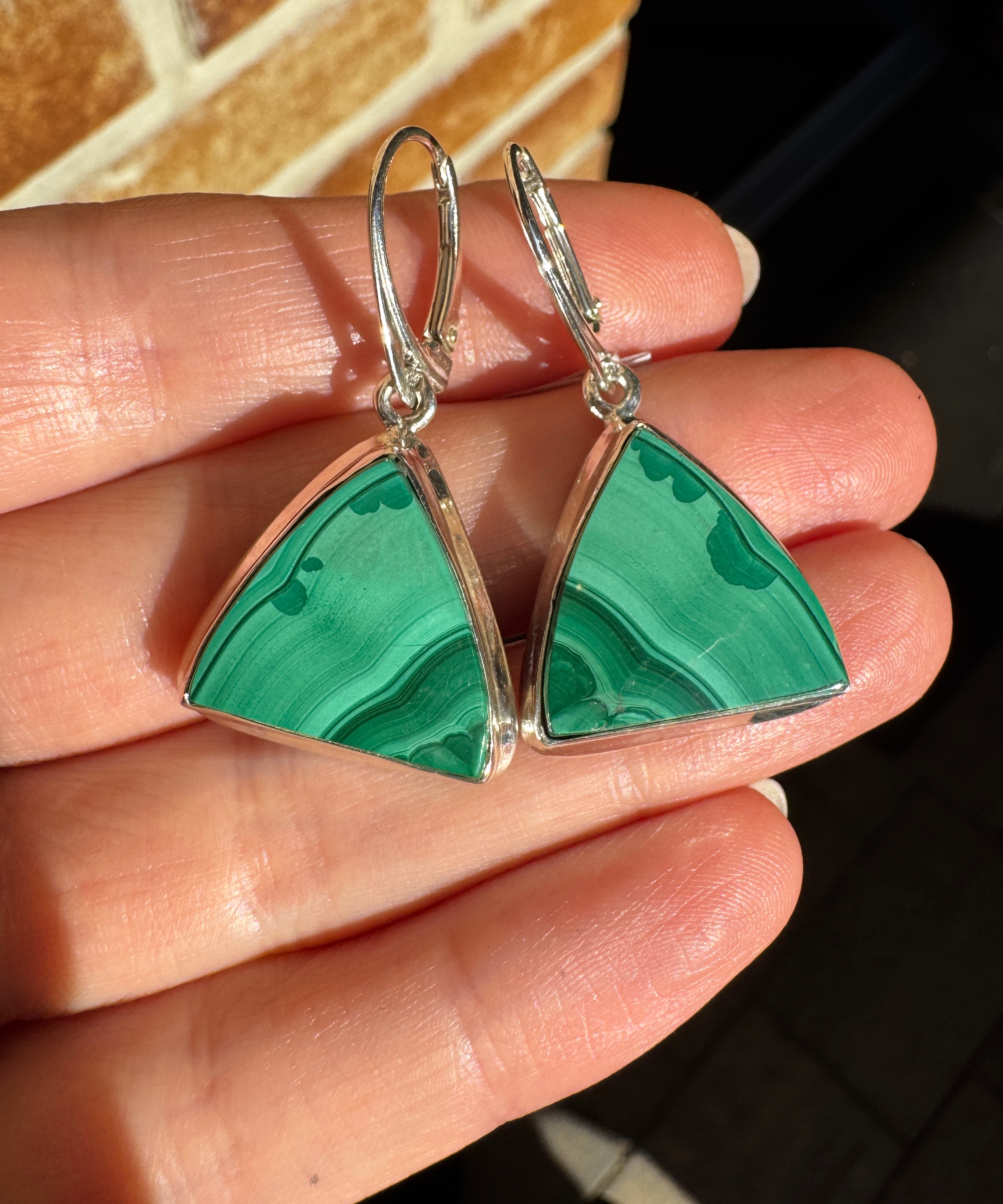 Kolczyki wykonane ze srebra pr. 925 oraz malachitu w pięknej zieleni