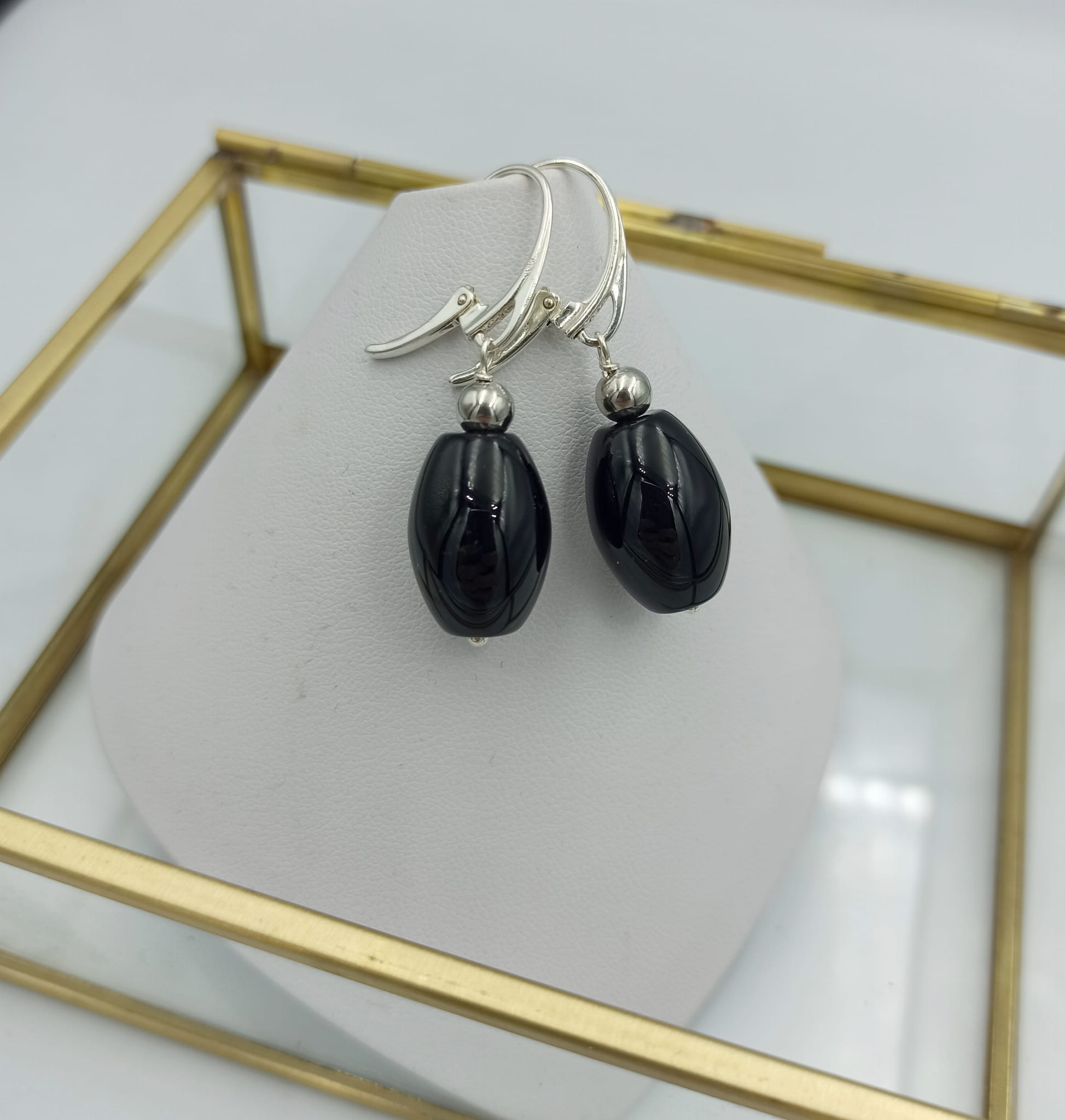 Ręcznie wykonane kolczyki z onyksów i srebra pr. 925