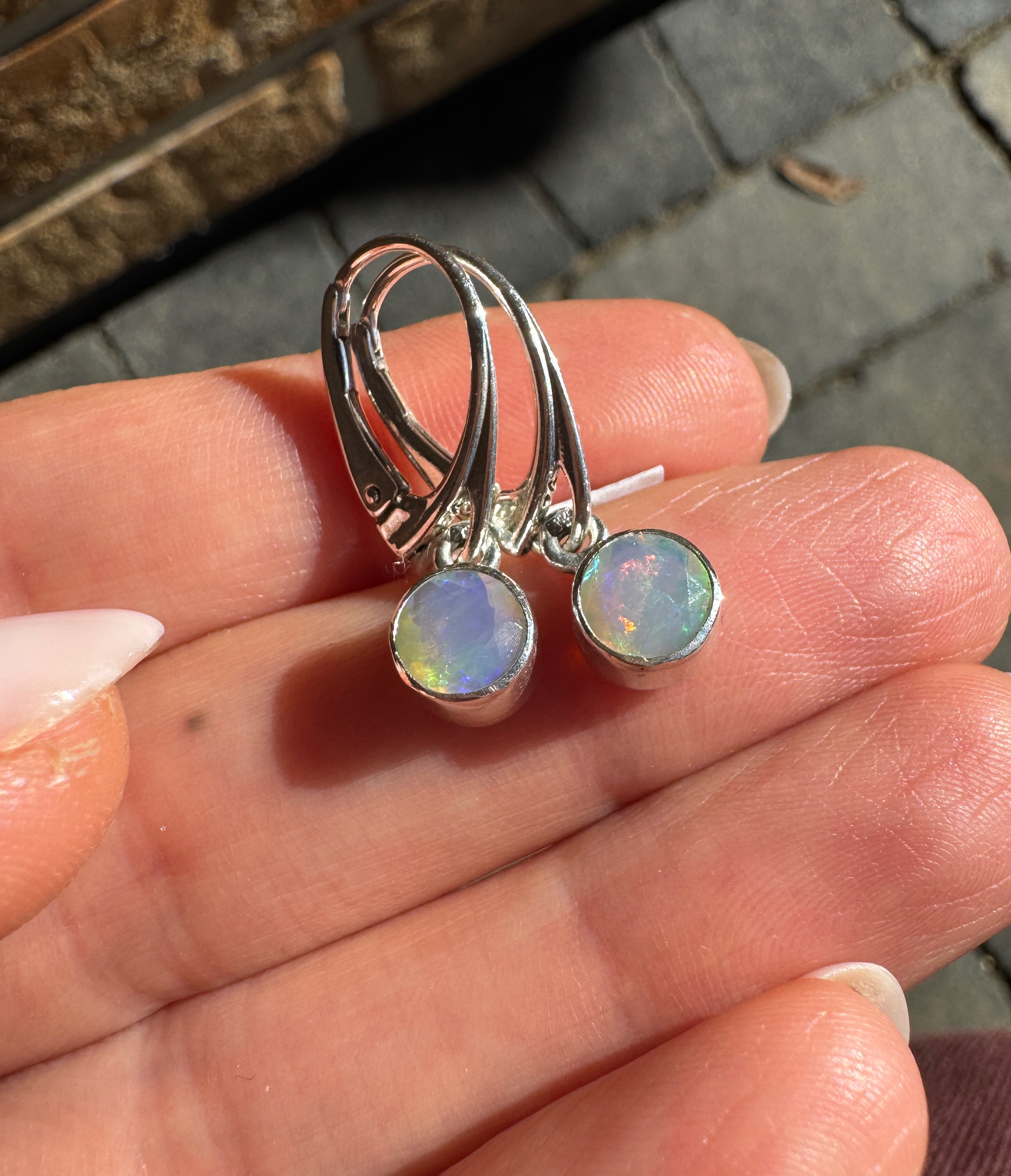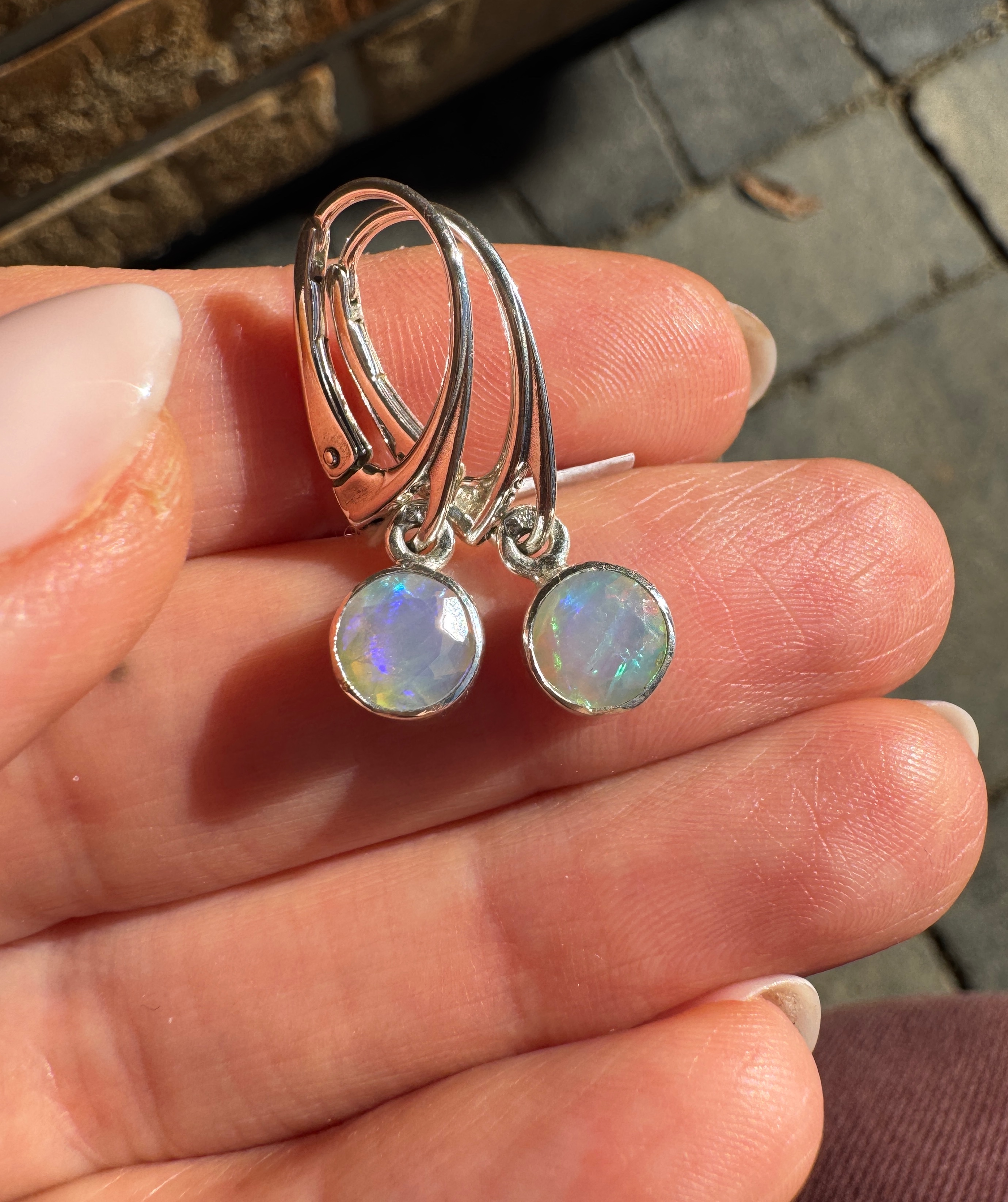 Kolczyki wykonane z opali naturalnych fasetowanych okrągłych i srebra pr. 925