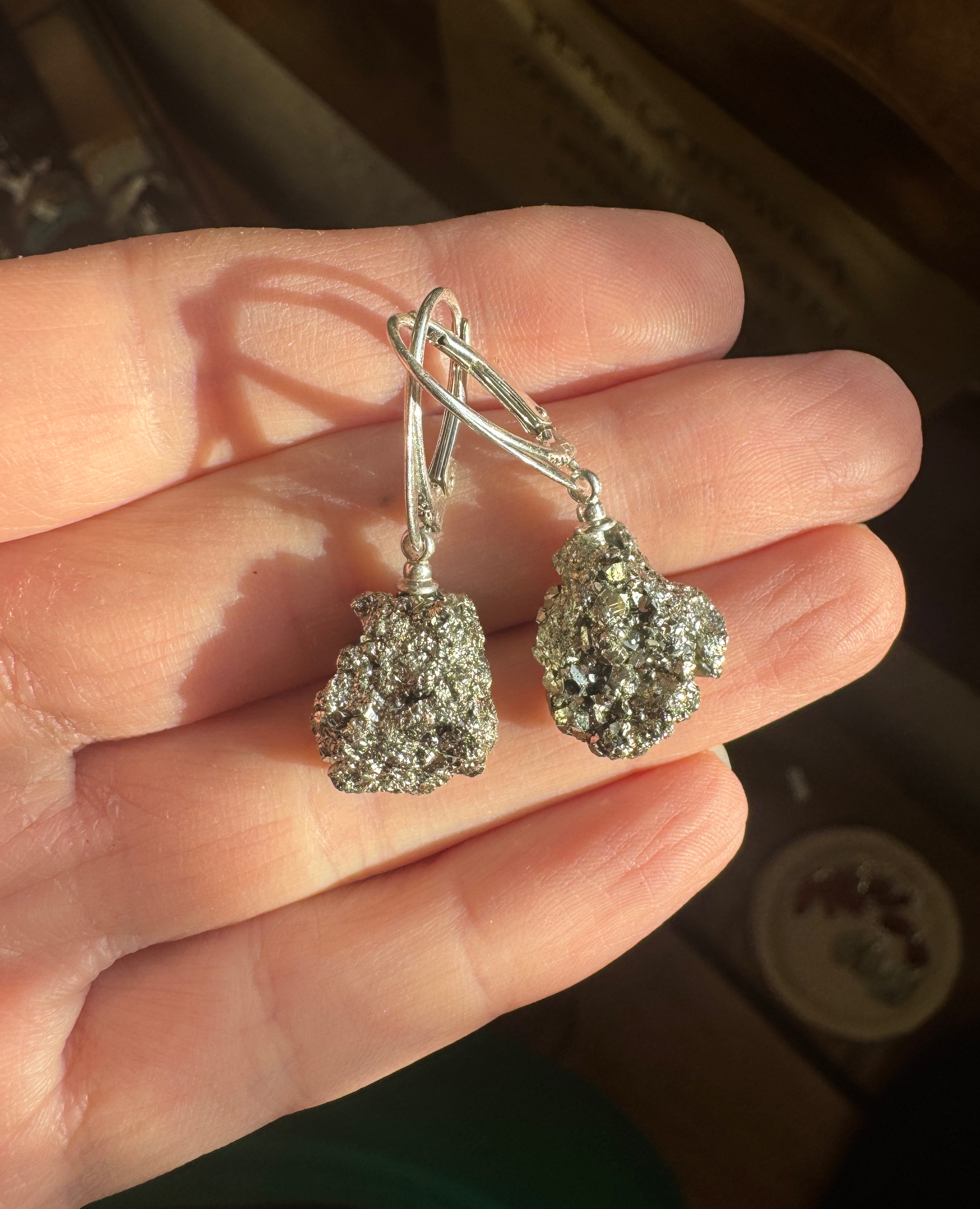 Ręcznie wykonane kolczyki z bryłek pirytu i srebra pr. 925