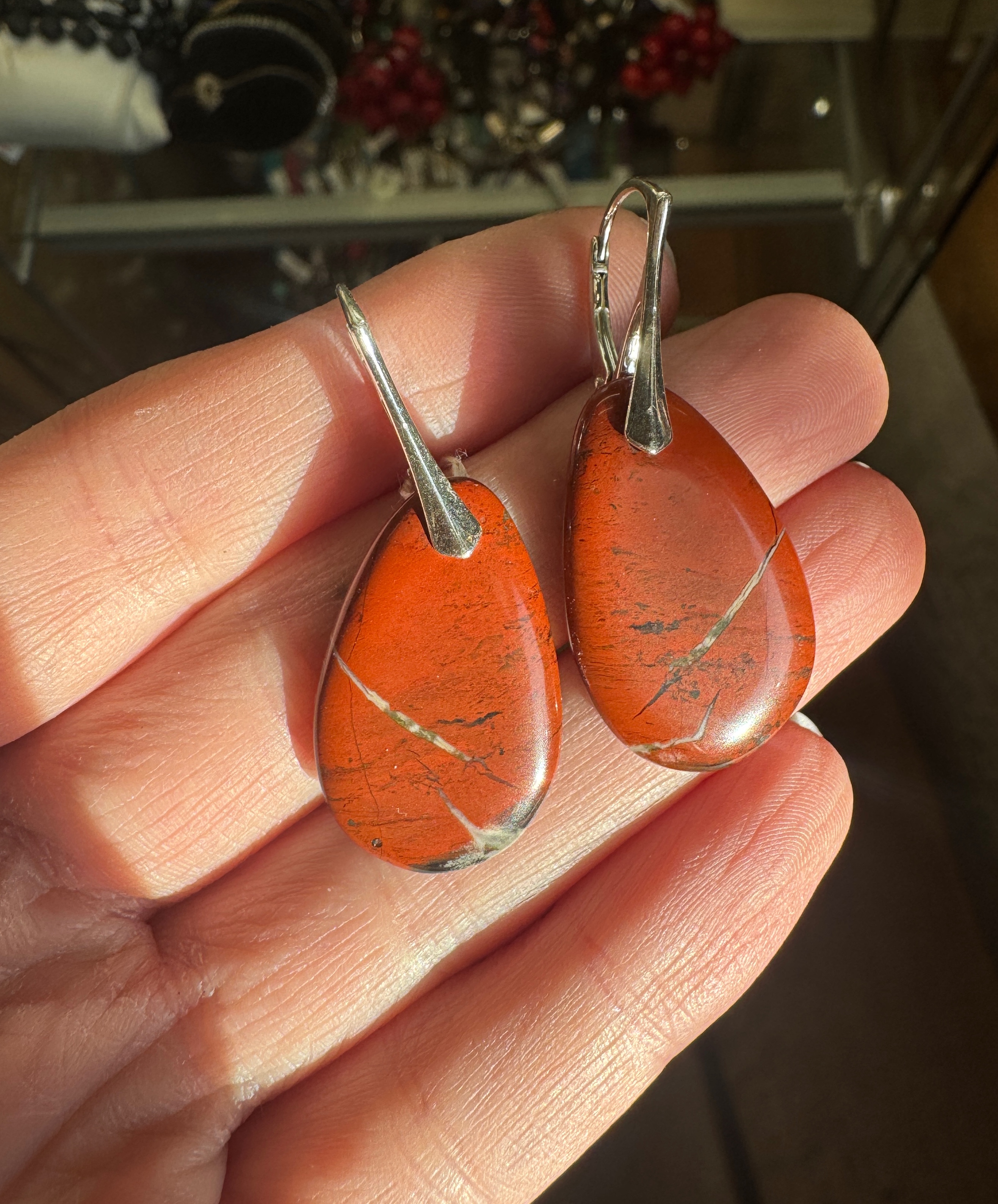 Ręcznie wykonane kolczyki płaskiego jaspisu czerwonego i srebra pr. 925