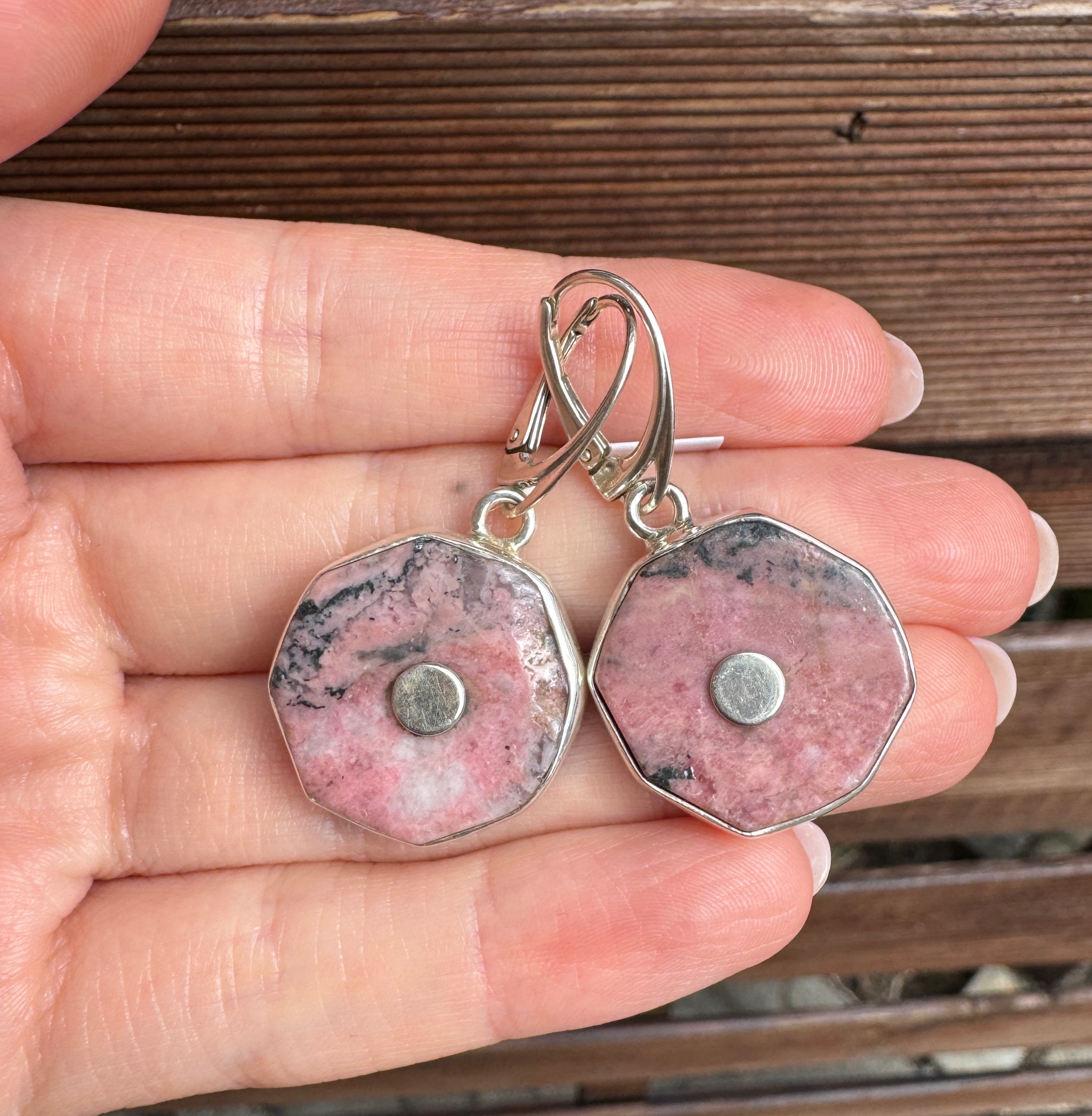 Ręcznie wykonane kolczyki jaspisu rodonitu w odcieniu różu i srebra pr. 925
