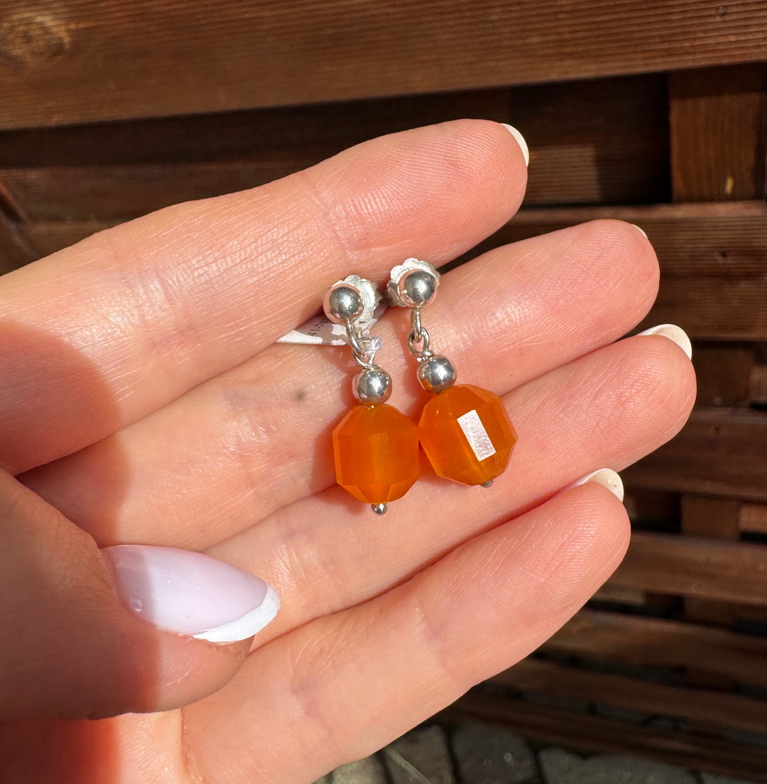 Ręcznie wykonane kolczyki z fasetowanych agatów w pomarańczowym odcieniu i srebra pr. 925