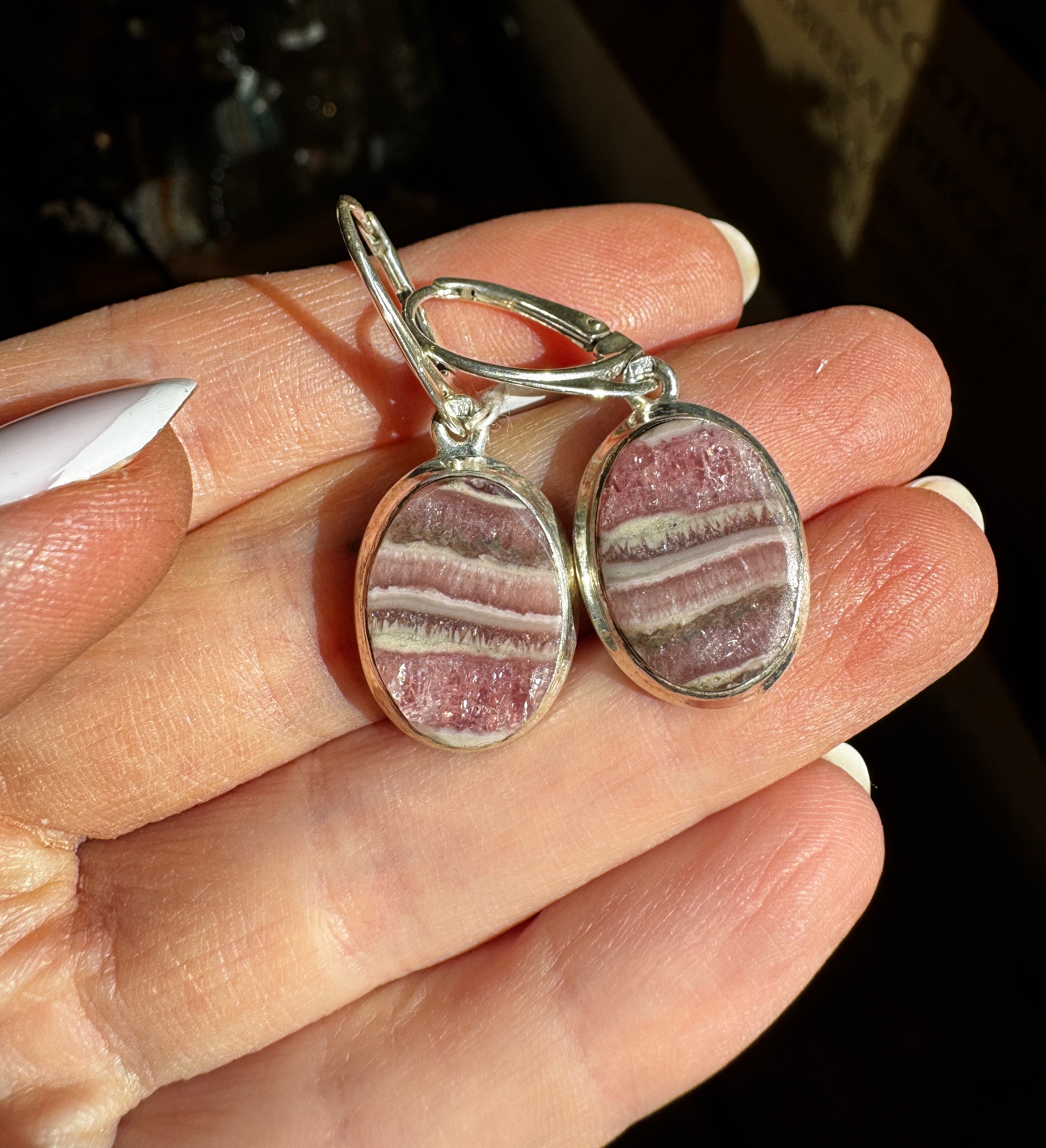 Ręcznie wykonane kolczyki z owalnych rodochrozytów i srebra pr. 925
