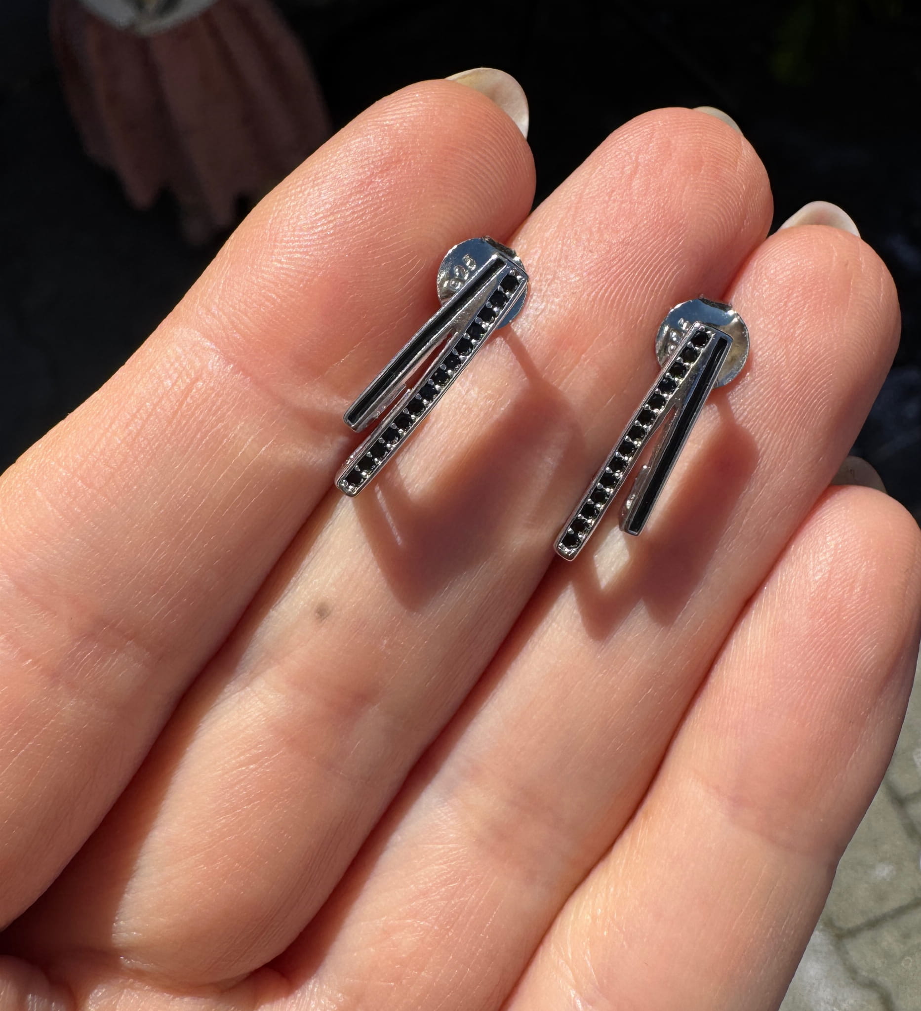 kolczyki wkrętki wykonane ze srebra pr. 925 czarnych cyrkonii i emalii