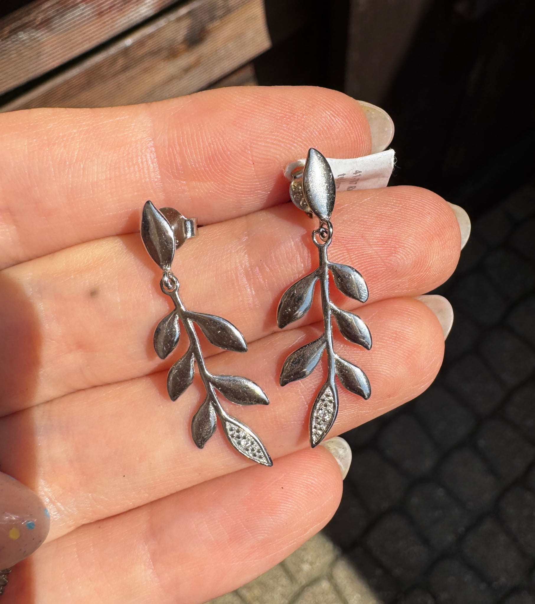 Listki - kolczyki ze srebra pr. 925 i białych cyrkonii