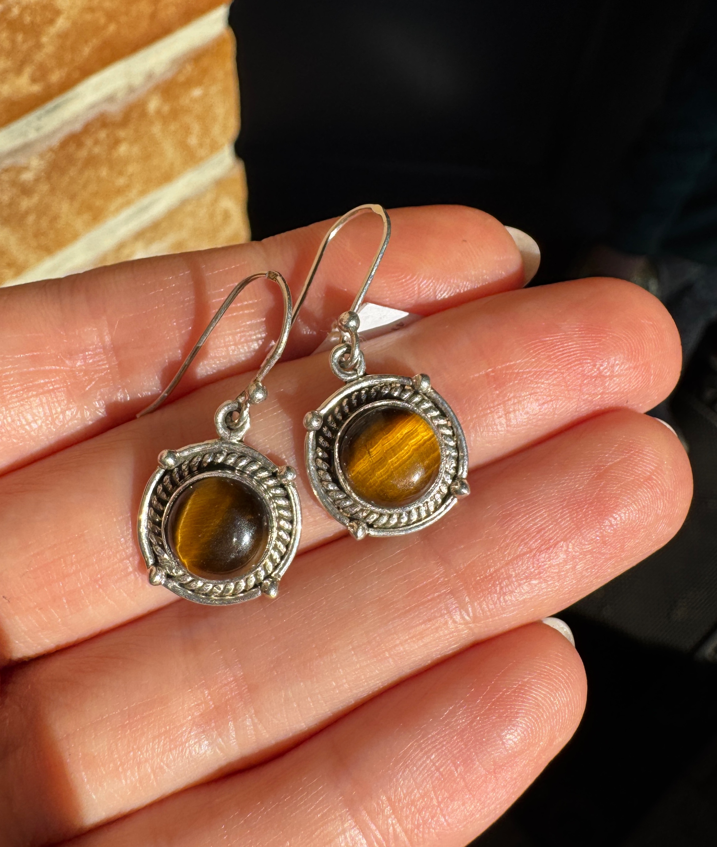 Ręcznie wykonane kolczyki z tygrysiego oka srebra pr. 925