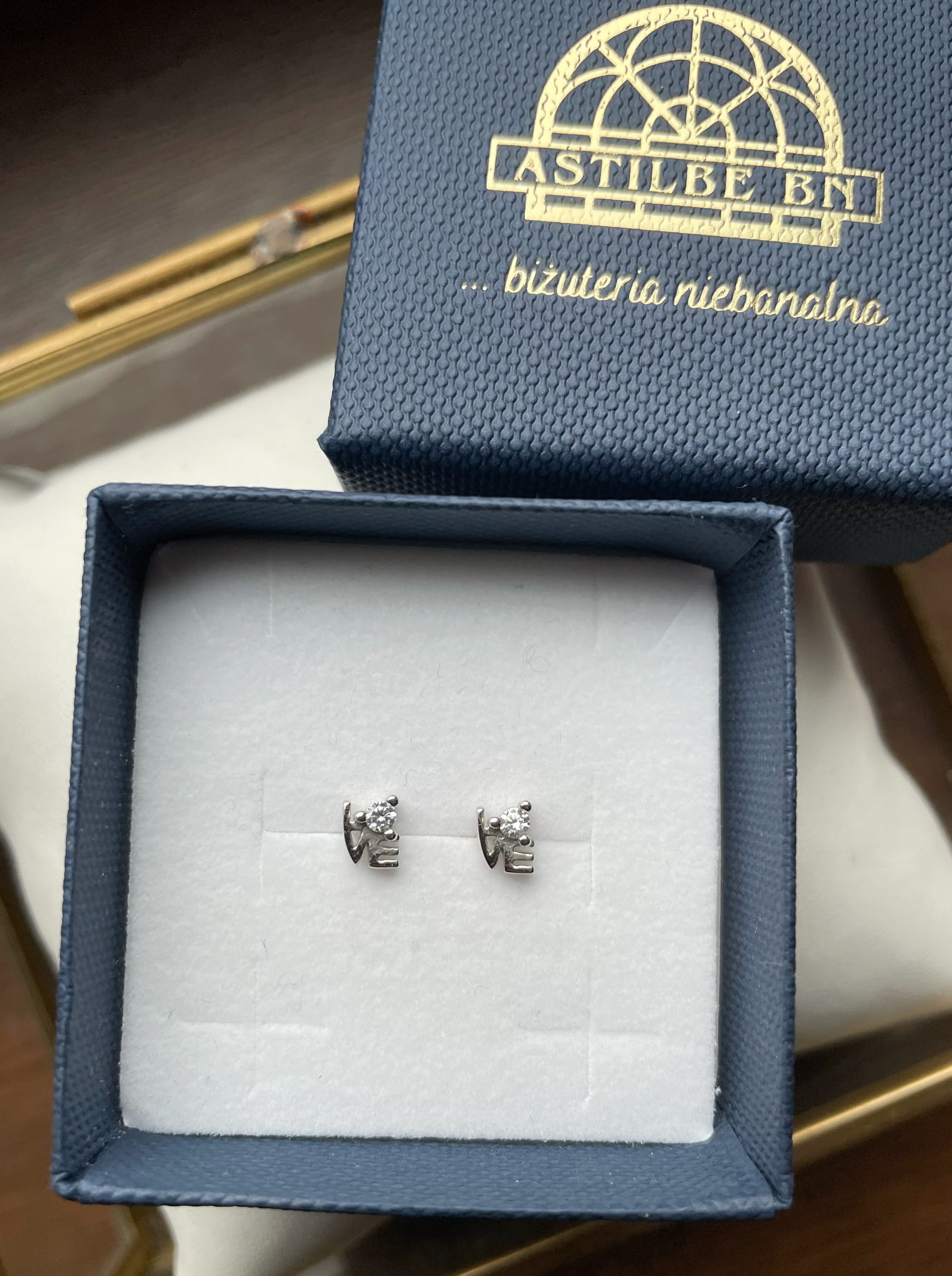 Kolczyki wkrętki LOVE wykonane ze srebra pr. 925 i białych cyrkonii