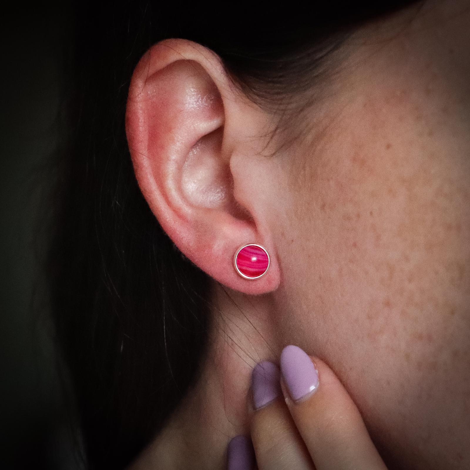 Kolczyki wkrętki agat różowy 8 mm