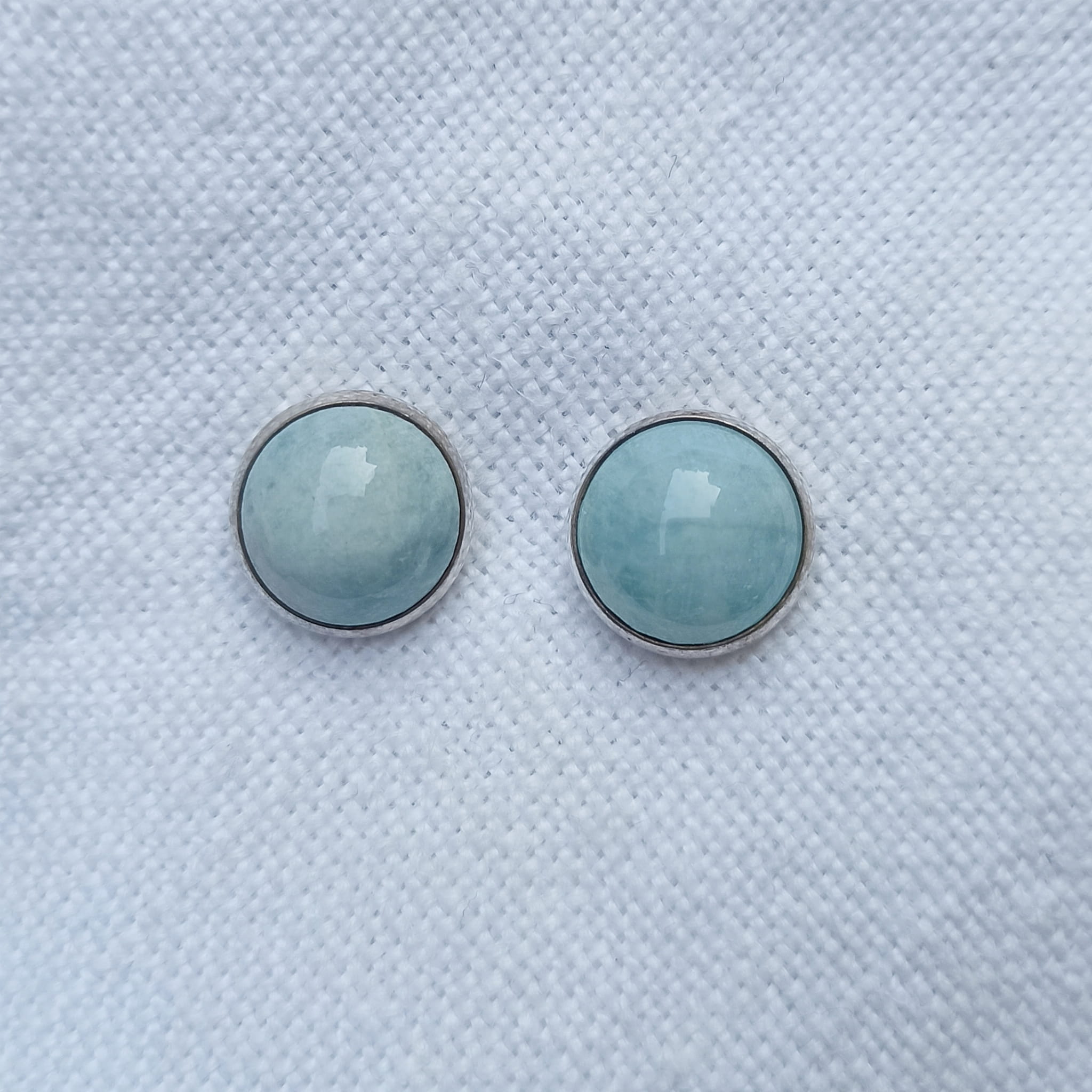 Ręcznie wykonane kolczyki wkrętki z akwamarynu o średnicy 10mm oprawionego w srebro pr. 925