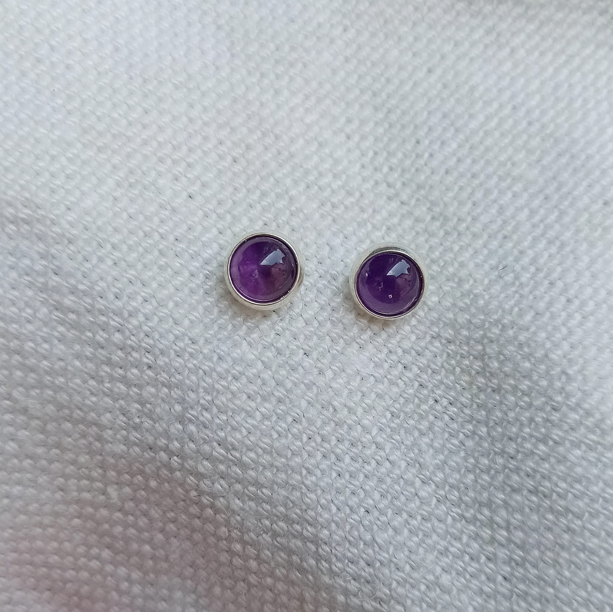 Ręcznie wykonane kolczyki wkrętki z ametystu o średnicy 6mm oprawionego w srebro pr. 925