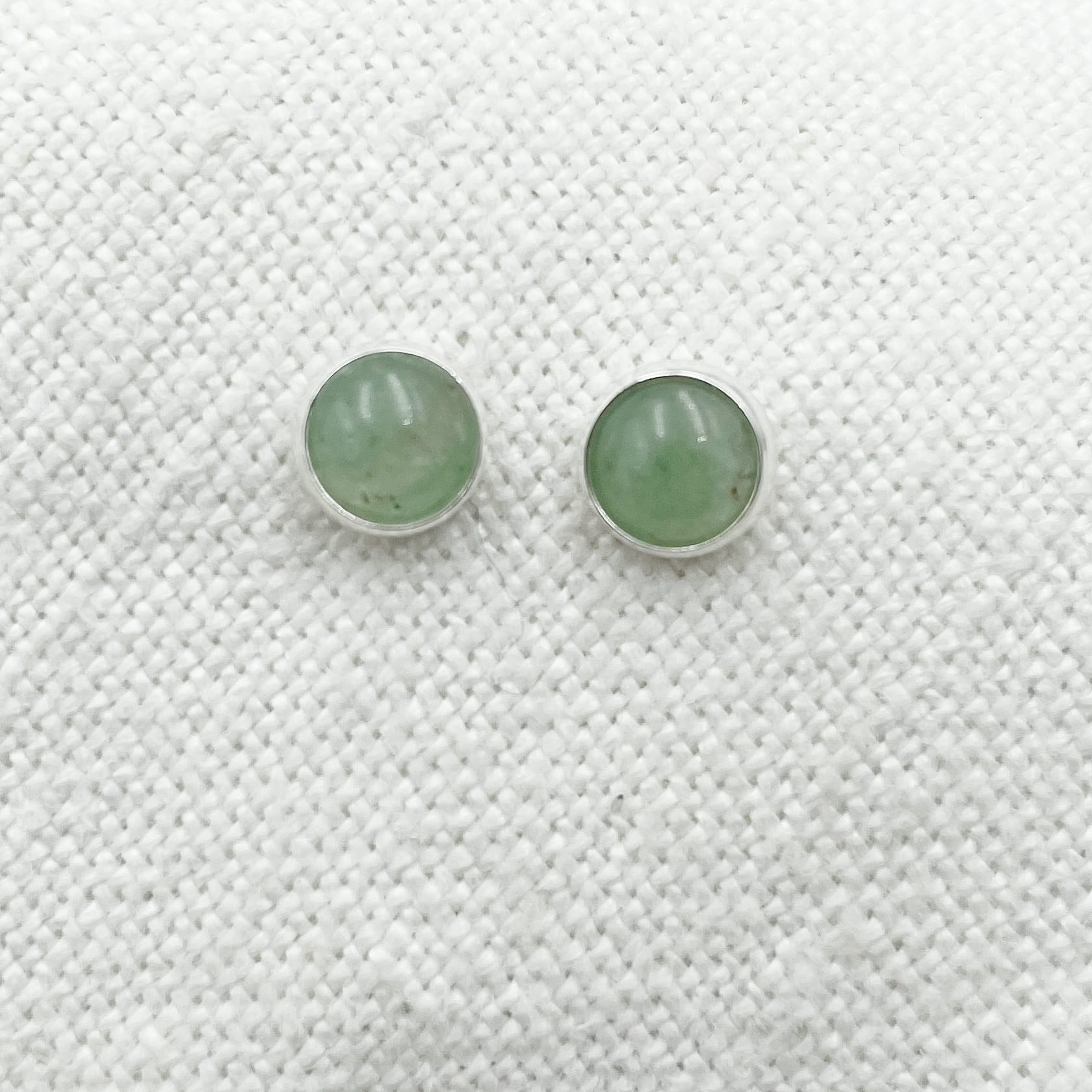 Ręcznie wykonane kolczyki wkrętki z zielonego awenturynu o średnicy 6 mm oprawionych w srebro pr. 925