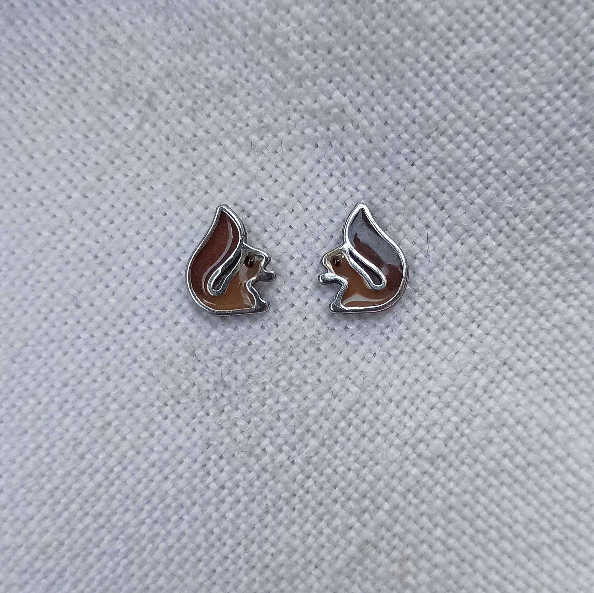 Kolczyki wkrętki brązowe wiewiórki wykonane ze srebra pr. 925 na które została nałożona emalia.