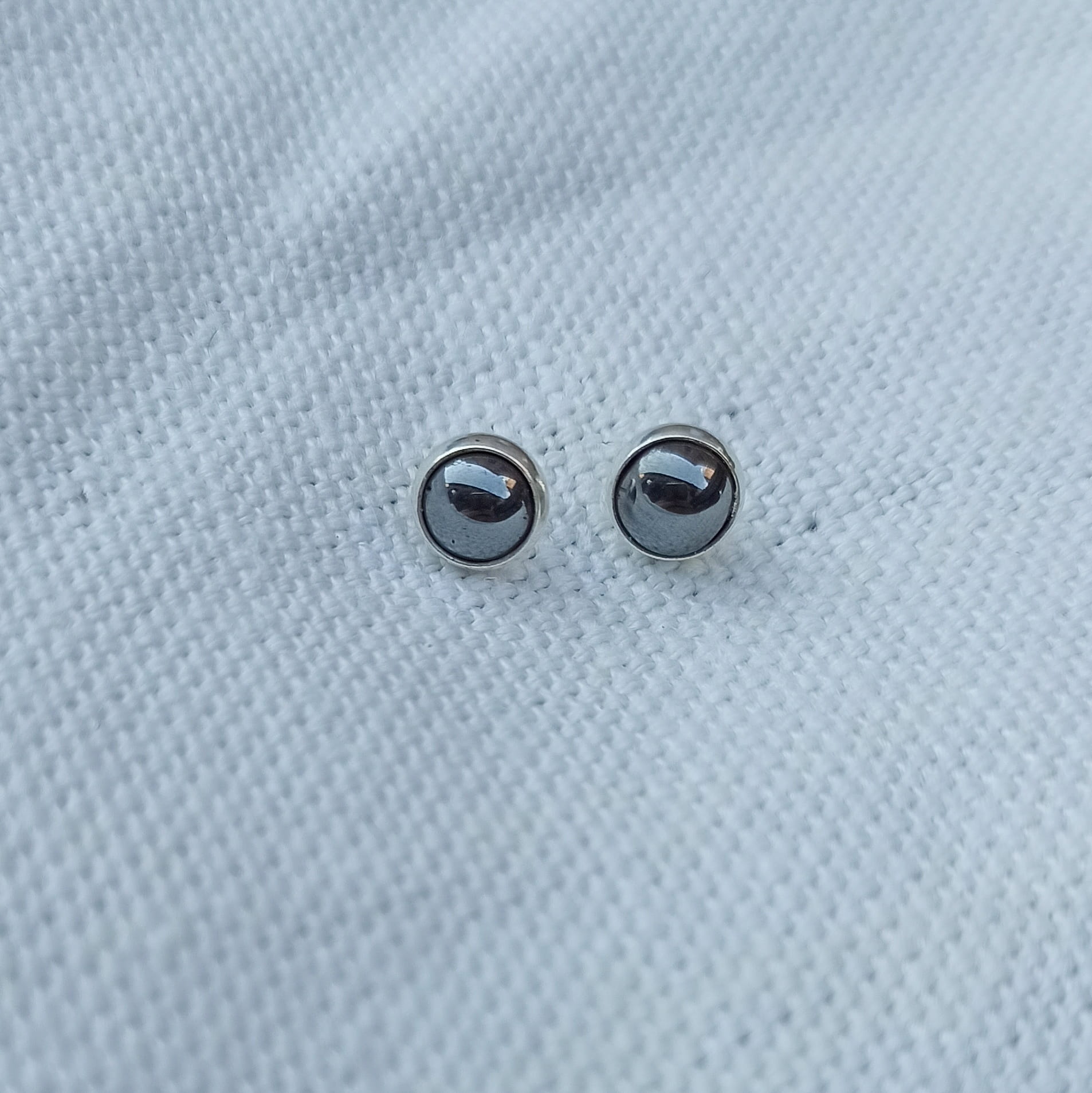 Ręcznie wykonane kolczyki wkrętki z hematytu o średnicy 6 mm oprawione w srebro pr. 925