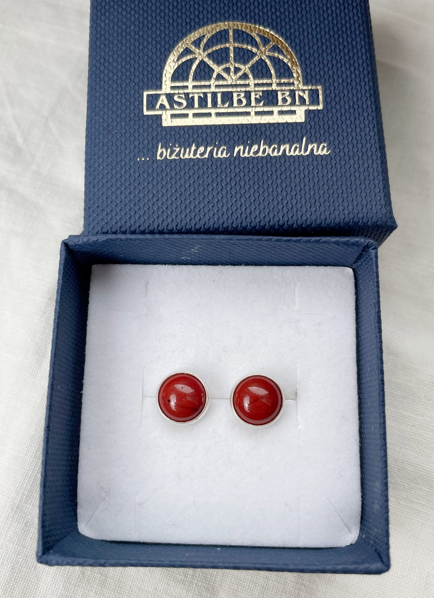 Ręcznie wykonane kolczyki wkrętki z jaspisu czerwonego o średnicy 8mm oprawione w srebro pr. 925