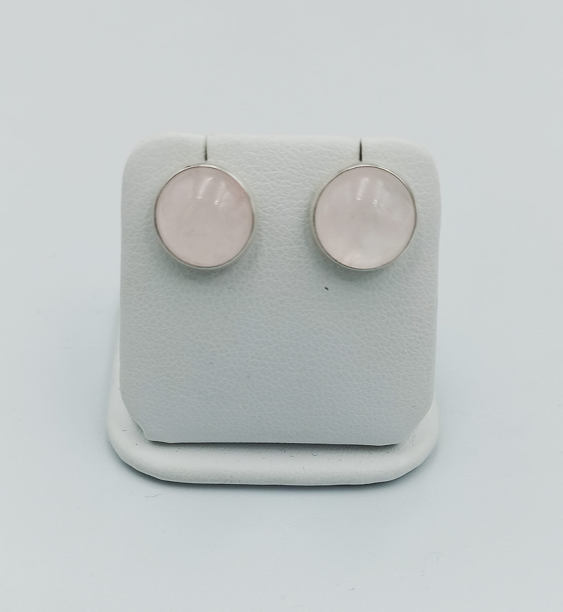 Ręcznie wykonane kolczyki wkrętki z kwarcu różowego o średnicy 10mm oprawionego w srebro pr. 925
