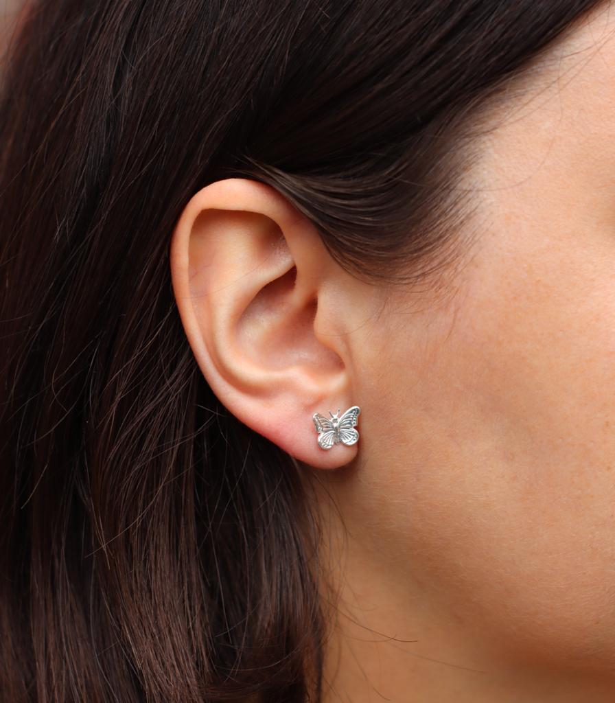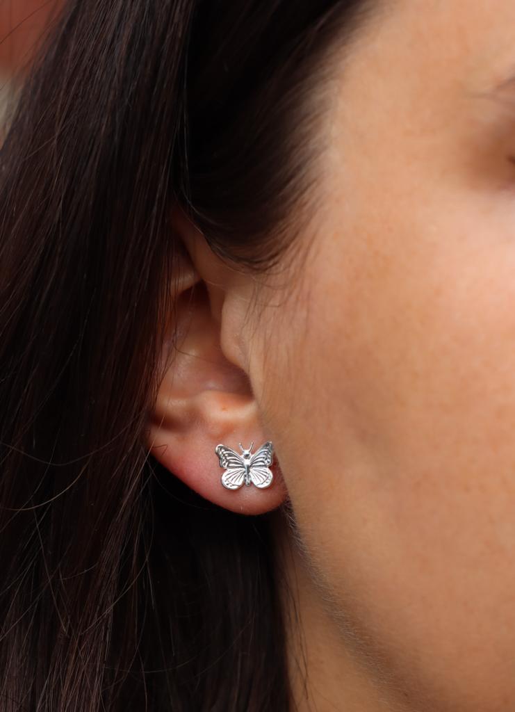 Kolczyki wkrętki z motywem motyla wykonane ze srebra pr.925.