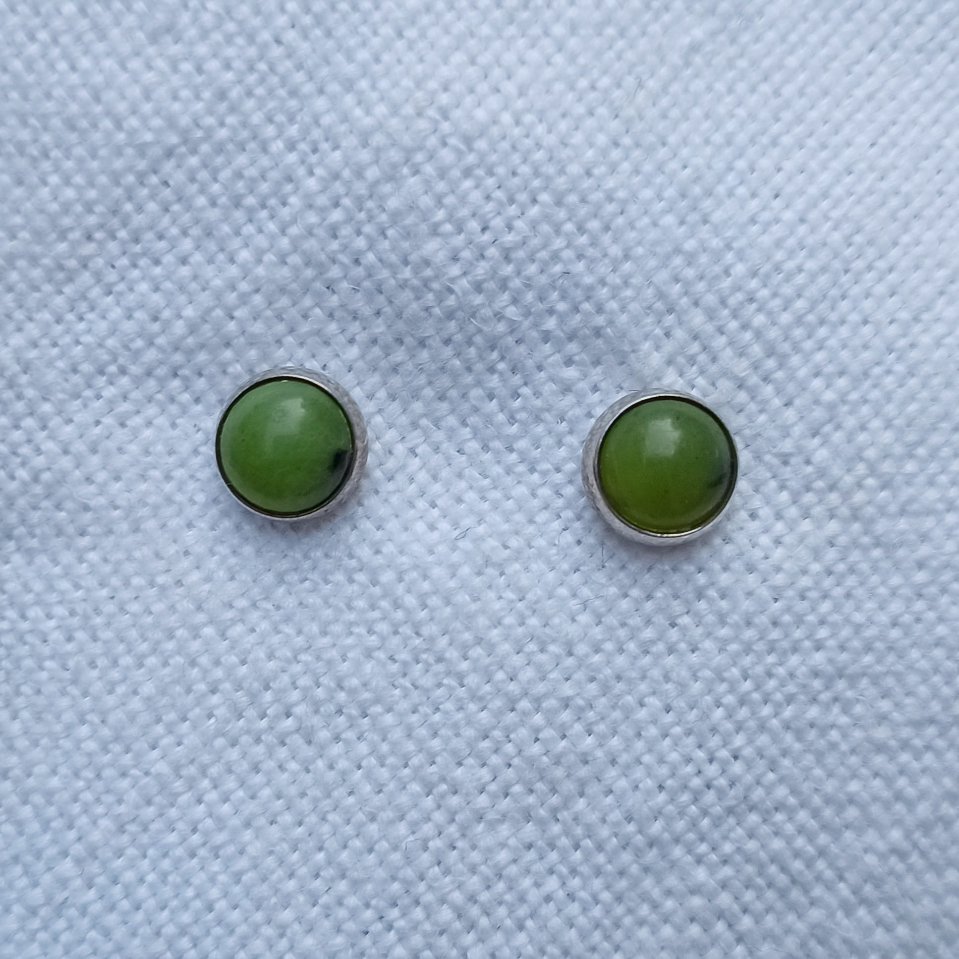 Ręcznie wykonane kolczyki wkrętki z zielonego nefrytu o średnicy 6 mm oprawione w srebro pr. 925