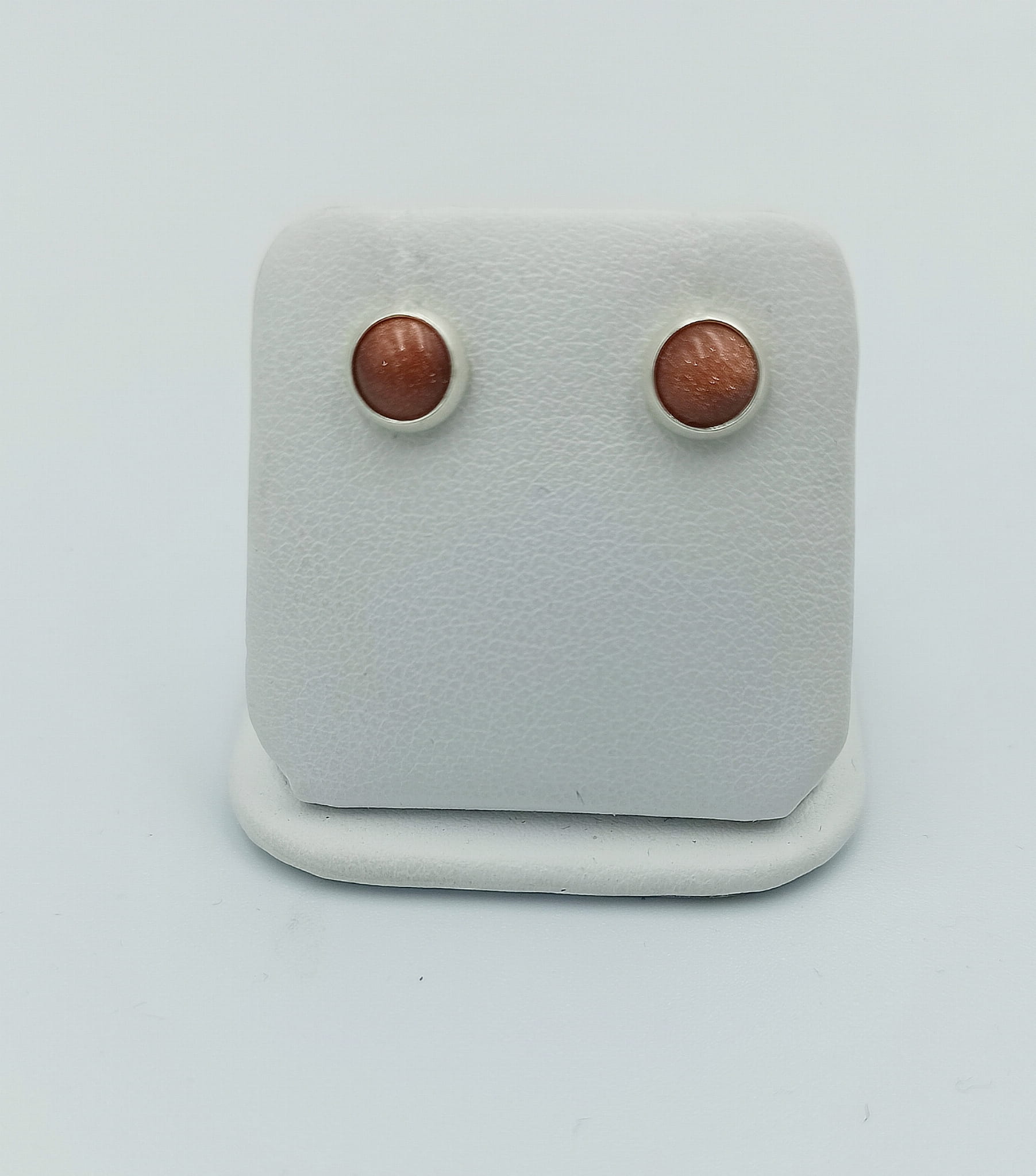 Ręcznie wykonane kolczyki wkrętki z piasku pustyni o średnicy 6 mm oprawionego w srebro pr. 925