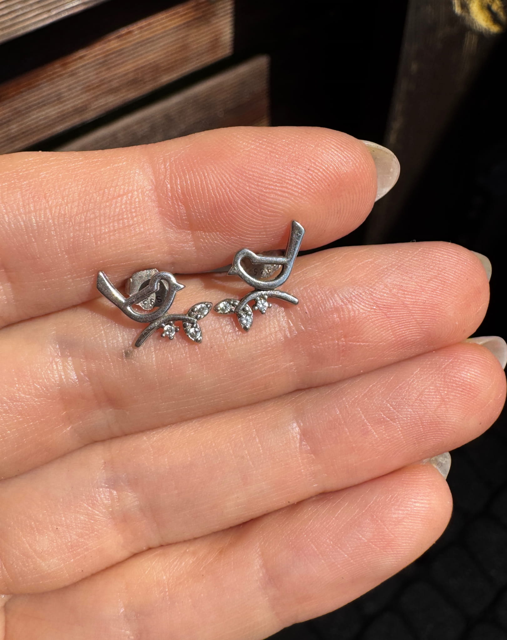 Kolczyki wkrętki ptaszki wykonane ze srebra pr. 925 i białych cyrkonii