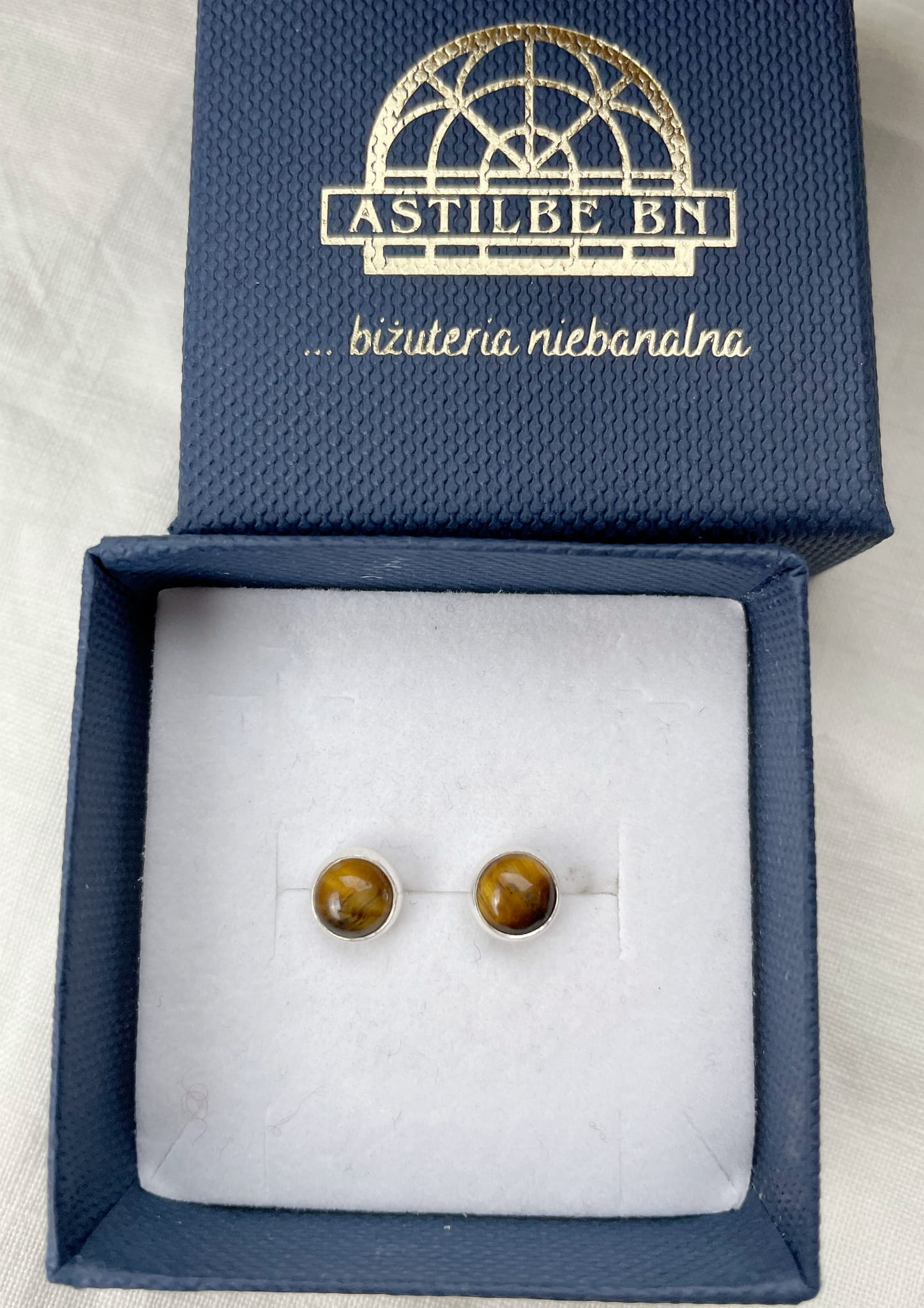 Ręcznie wykonane kolczyki wkrętki z tygrysiego oka o średnicy 6mm oprawionego w srebro pr. 925