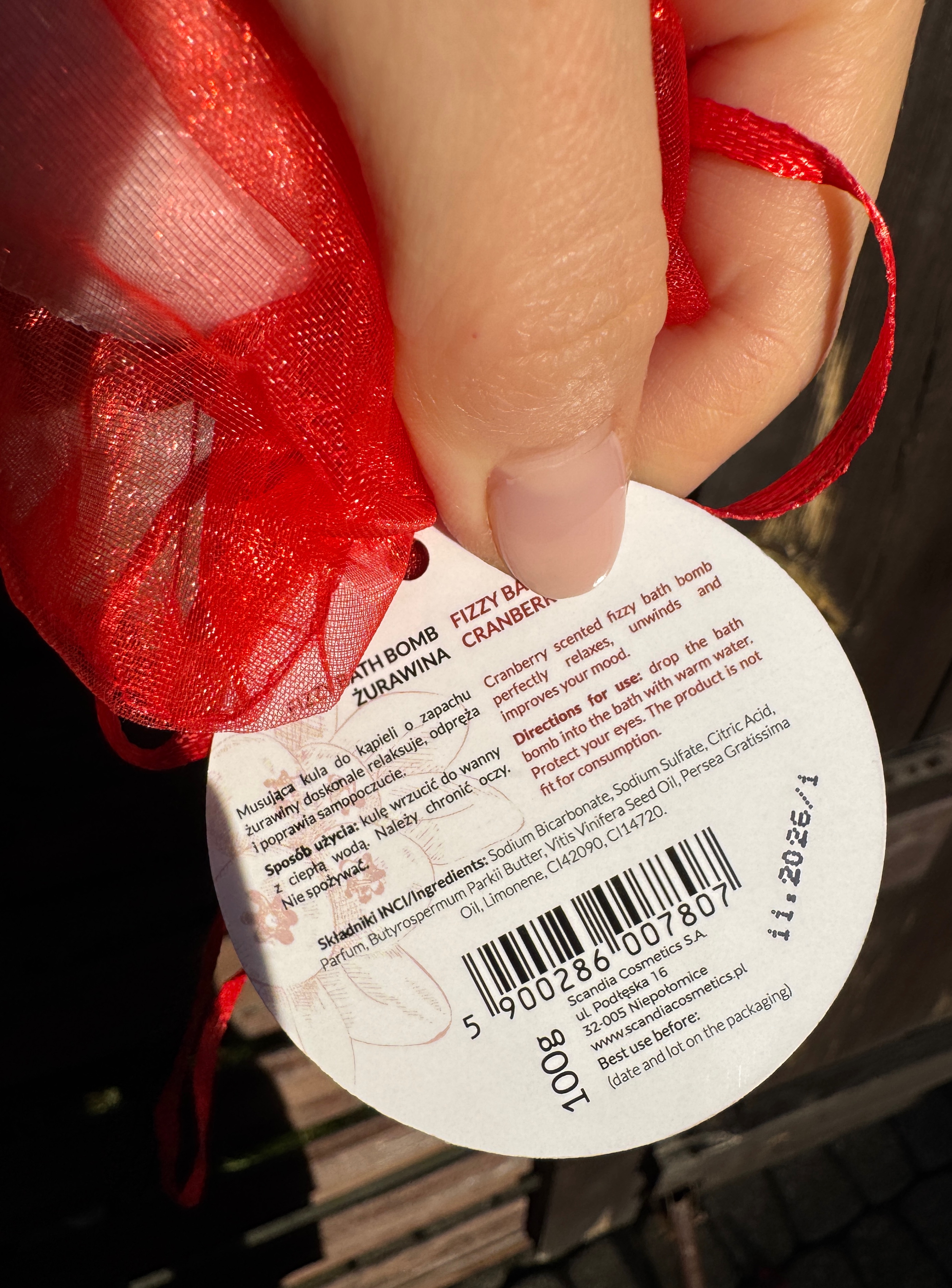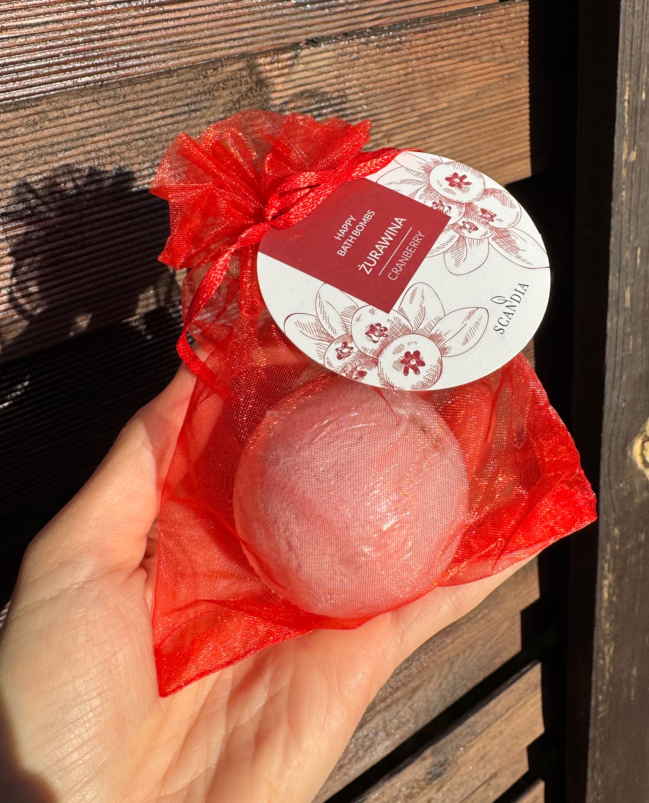 Musująca Kula do kąpieli polskiej marki Scandia Cosmetics o zapachu żurawina