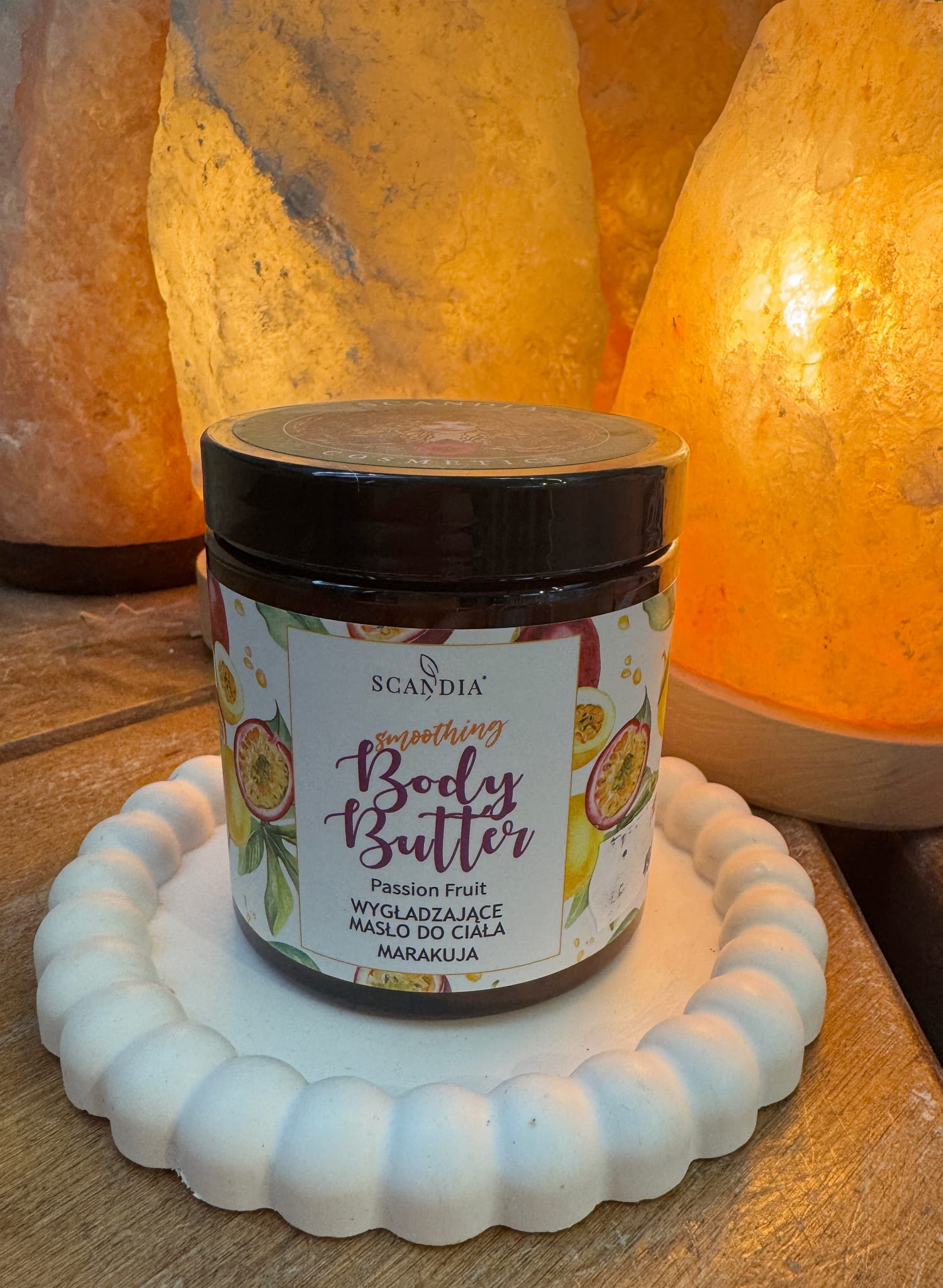 Masło do ciała o zapachu Marakui wyprodukowane w Polsce przez markę Scandia Cosmetics.