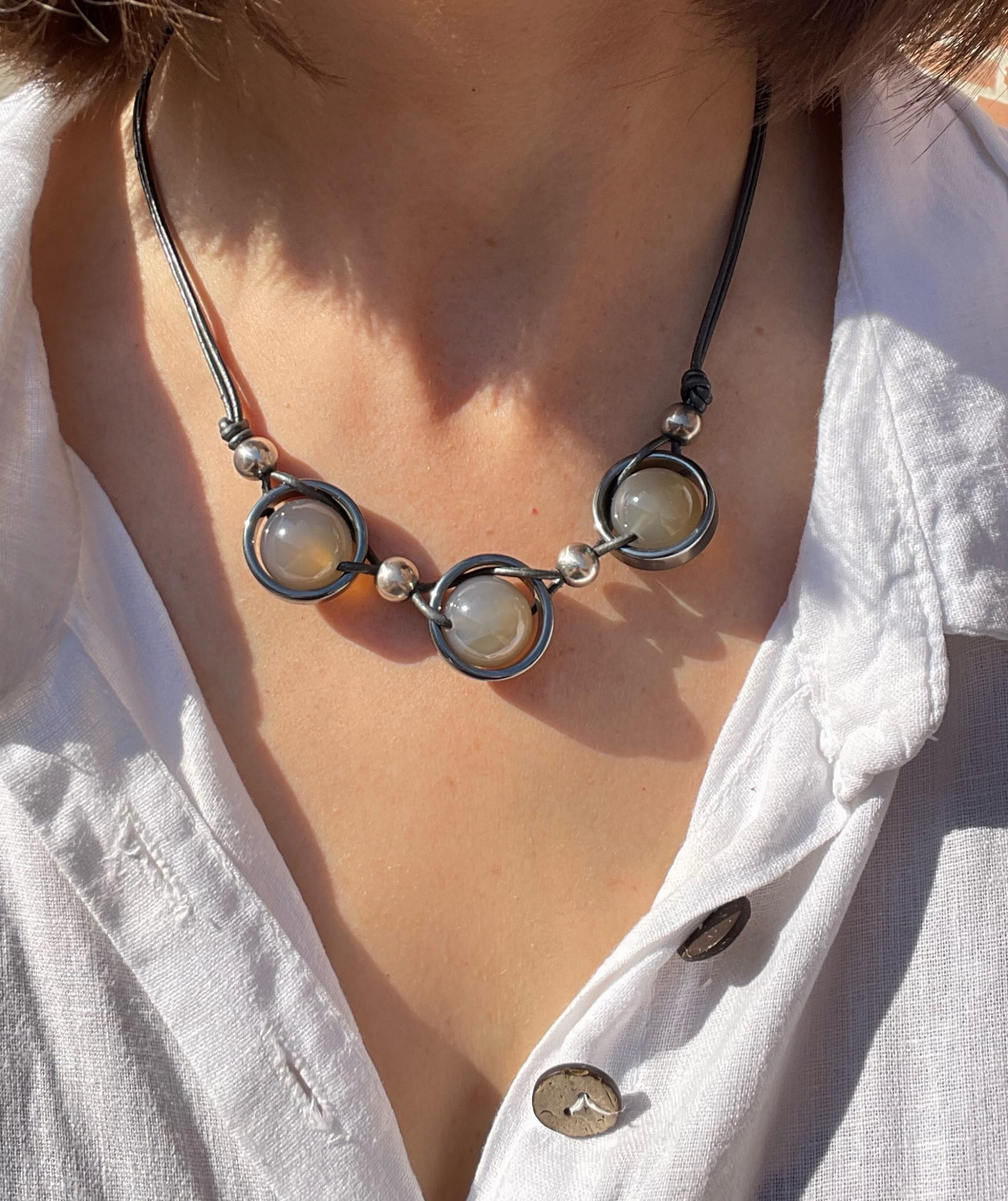 Naszyjnik Dalia agat szary