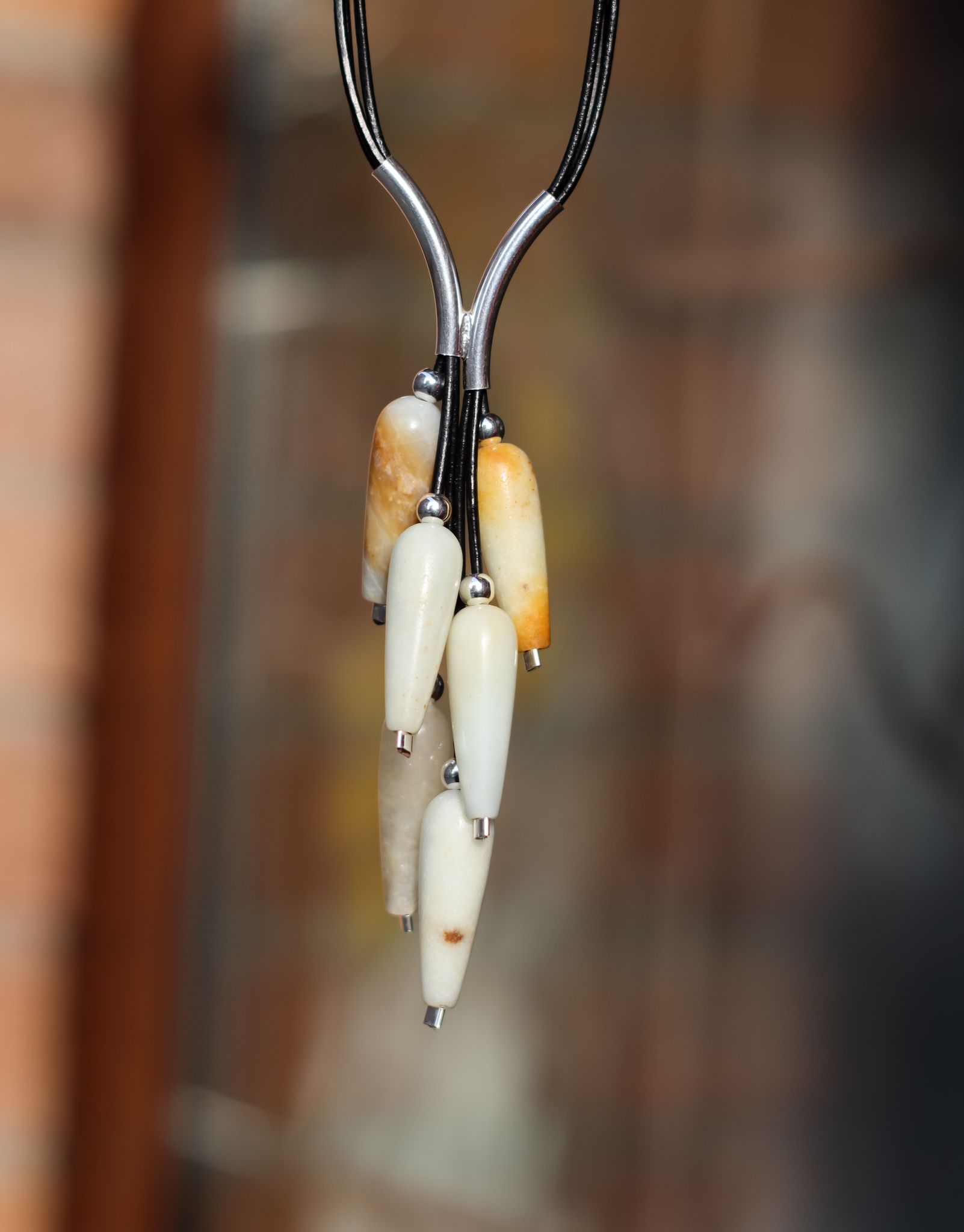 Długość wisiora od miejsca połączenia rurek do najdłuższego rzemienia z kamieniem to dodatkowe 7-13cm, w zależności od kamieni (tego wymiaru NIE uwzględniaj przy podawaniu długości)