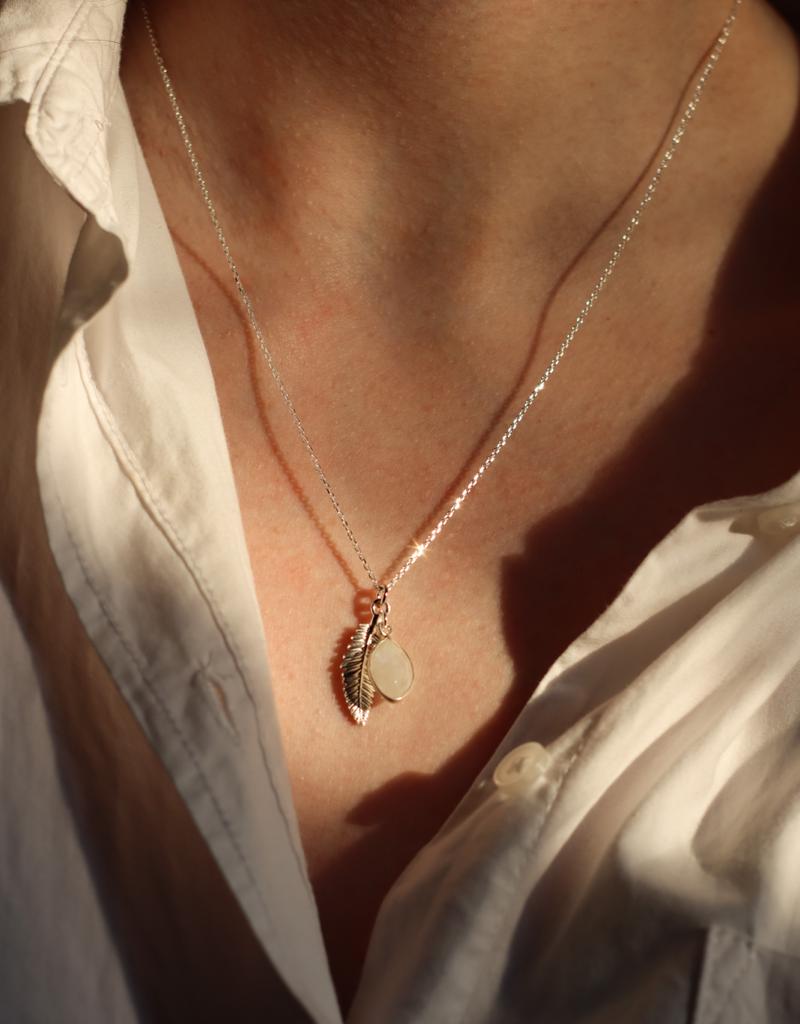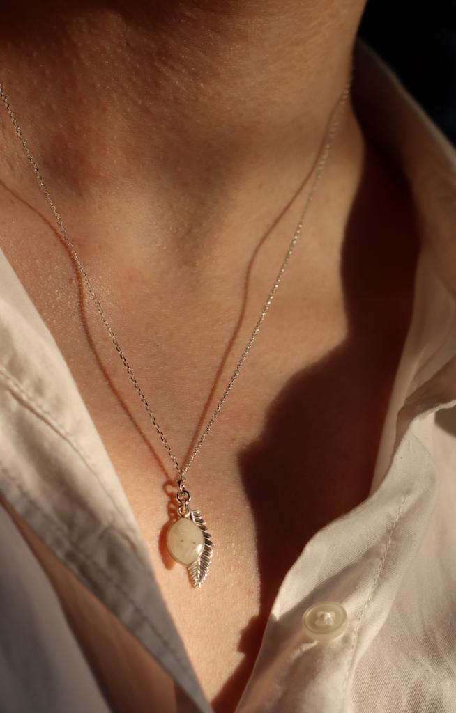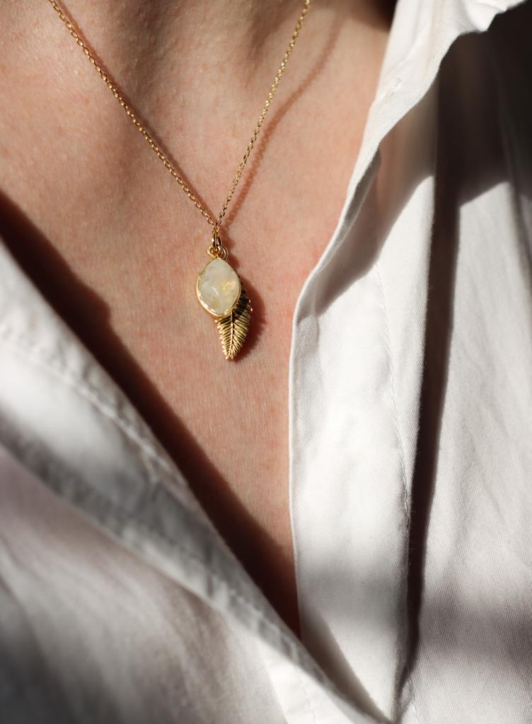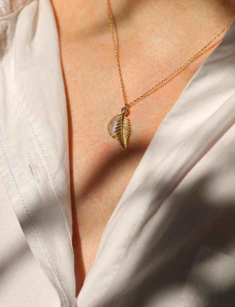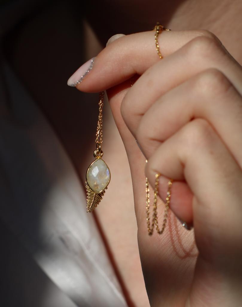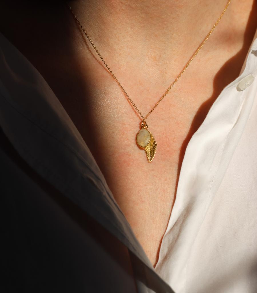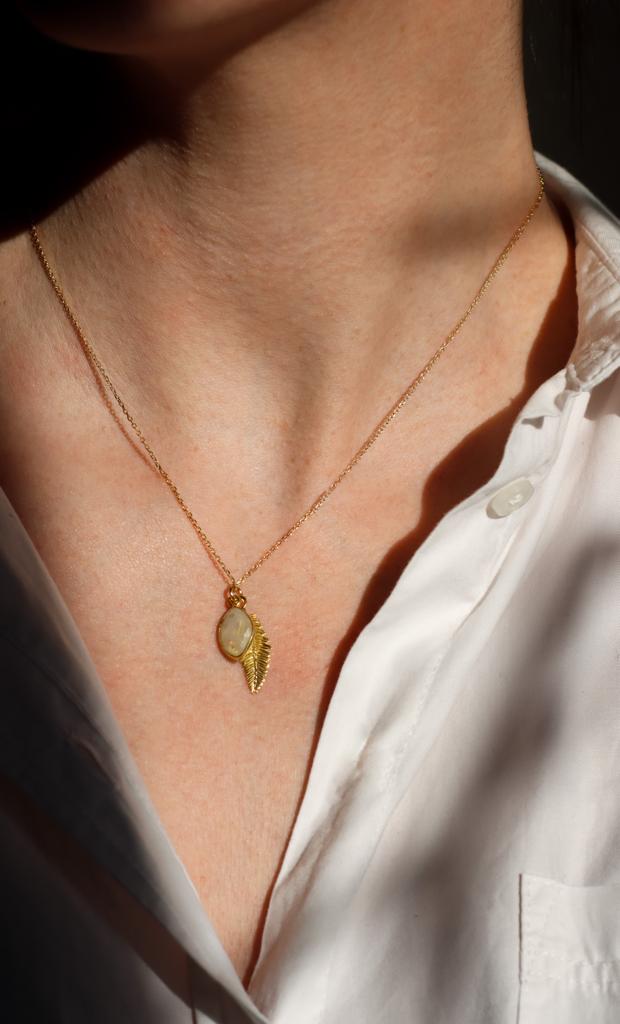 Naszyjnik Liść Paproci i kamień księżycowy srebro pozłacane lub klasyczne