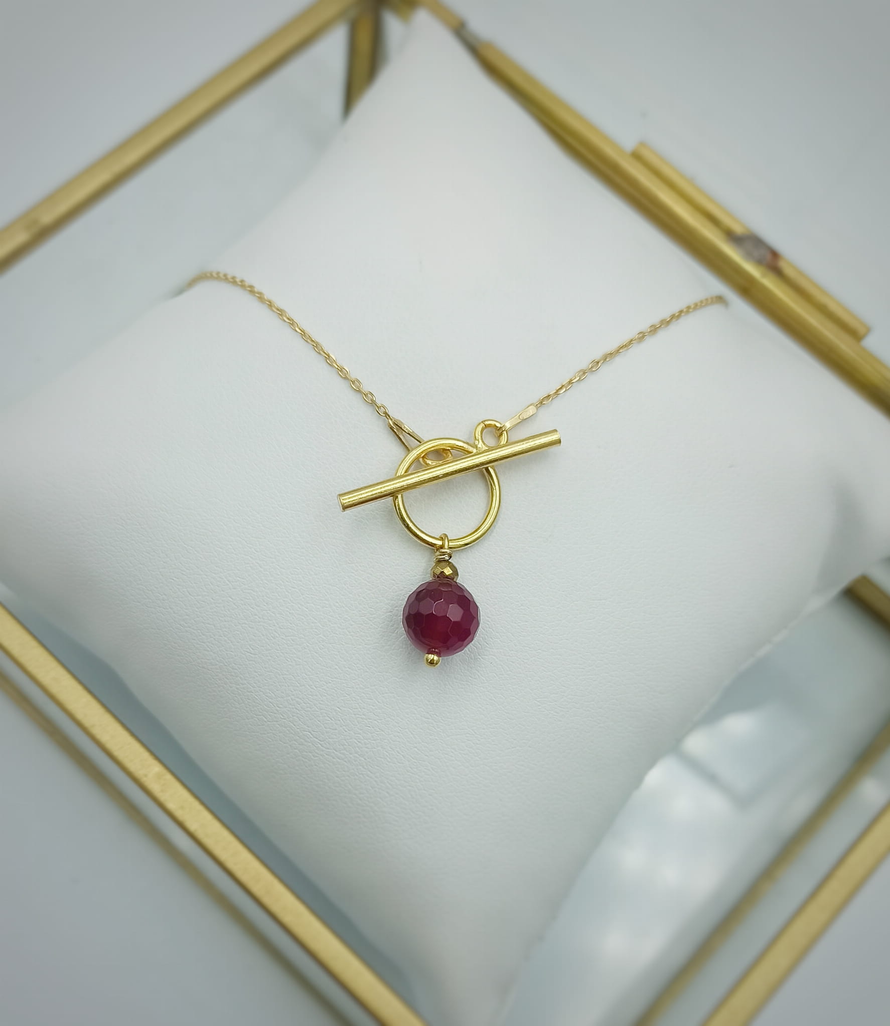 Ręcznie wykonany delikatny łańcuszek z pozłacanego srebra pr.925 z zawieszką z kuleczki fasetowanej agatu purpurowego