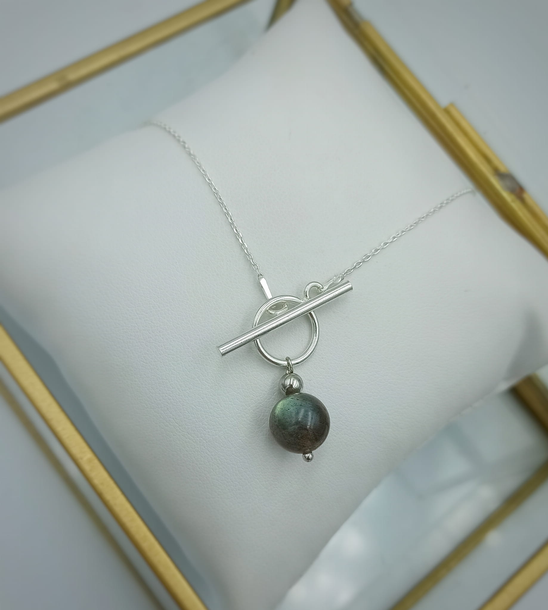 Ręcznie wykonany delikatny łańcuszek z klasycznego srebra pr.925 z zawieszką z kuleczki pięknie mieniącego się labradoryt.