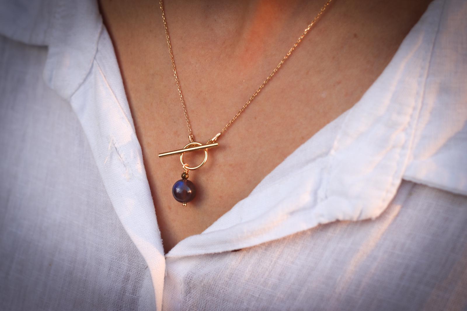 Naszyjnik Nel labradoryt srebro pozłacane