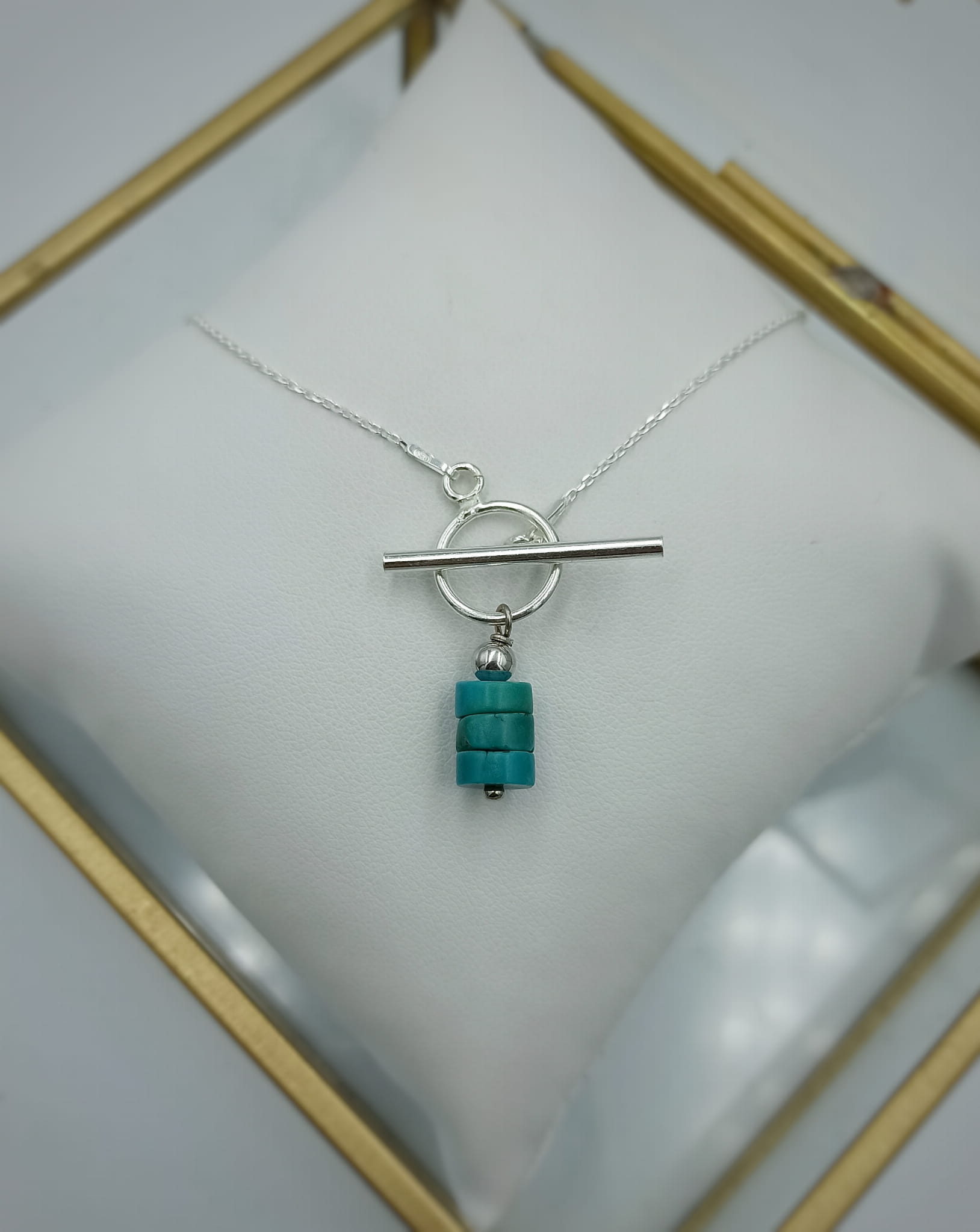 Ręcznie wykonany delikatny łańcuszek z klasycznego srebra pr.925 z zawieszką z trzech plasterków naturalnego turkusa