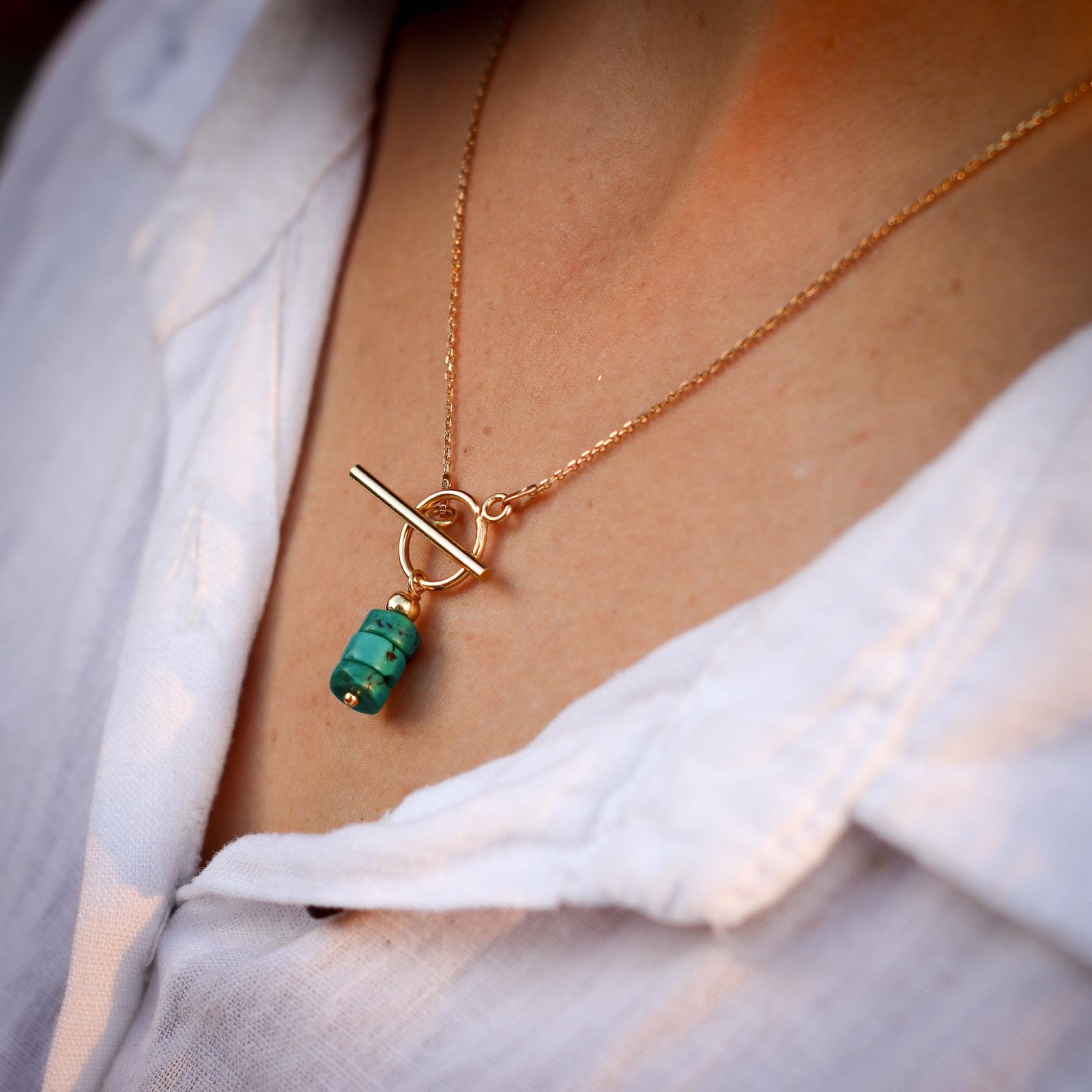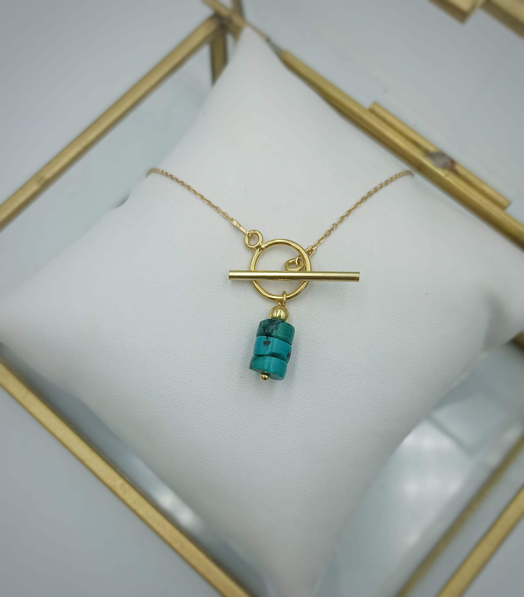 Ręcznie wykonany delikatny łańcuszek z pozłacanego srebra pr.925 z zawieszką z trzech plasterków naturalnego turkusa