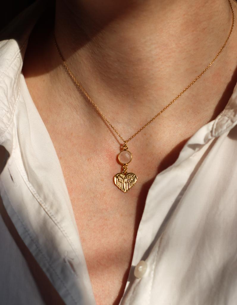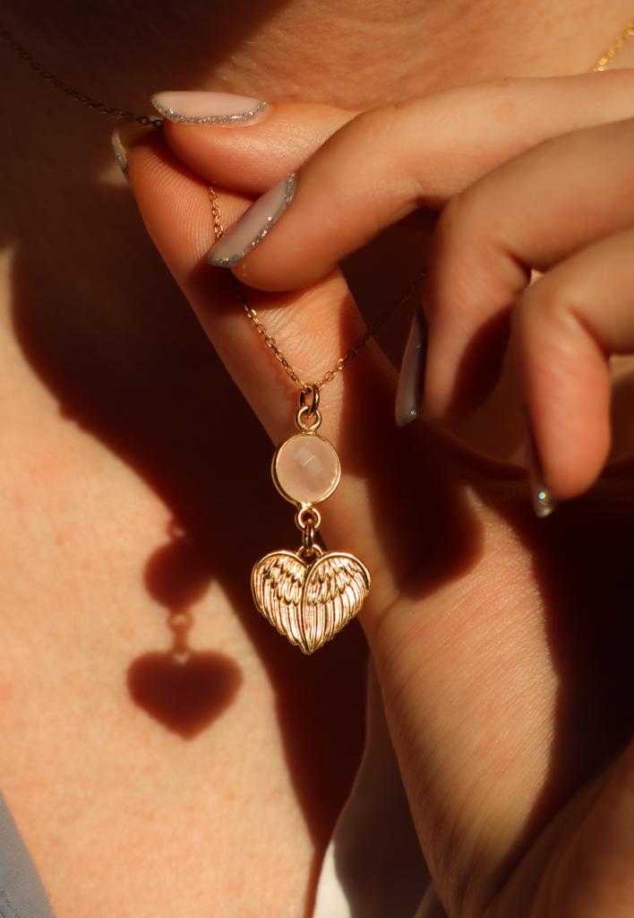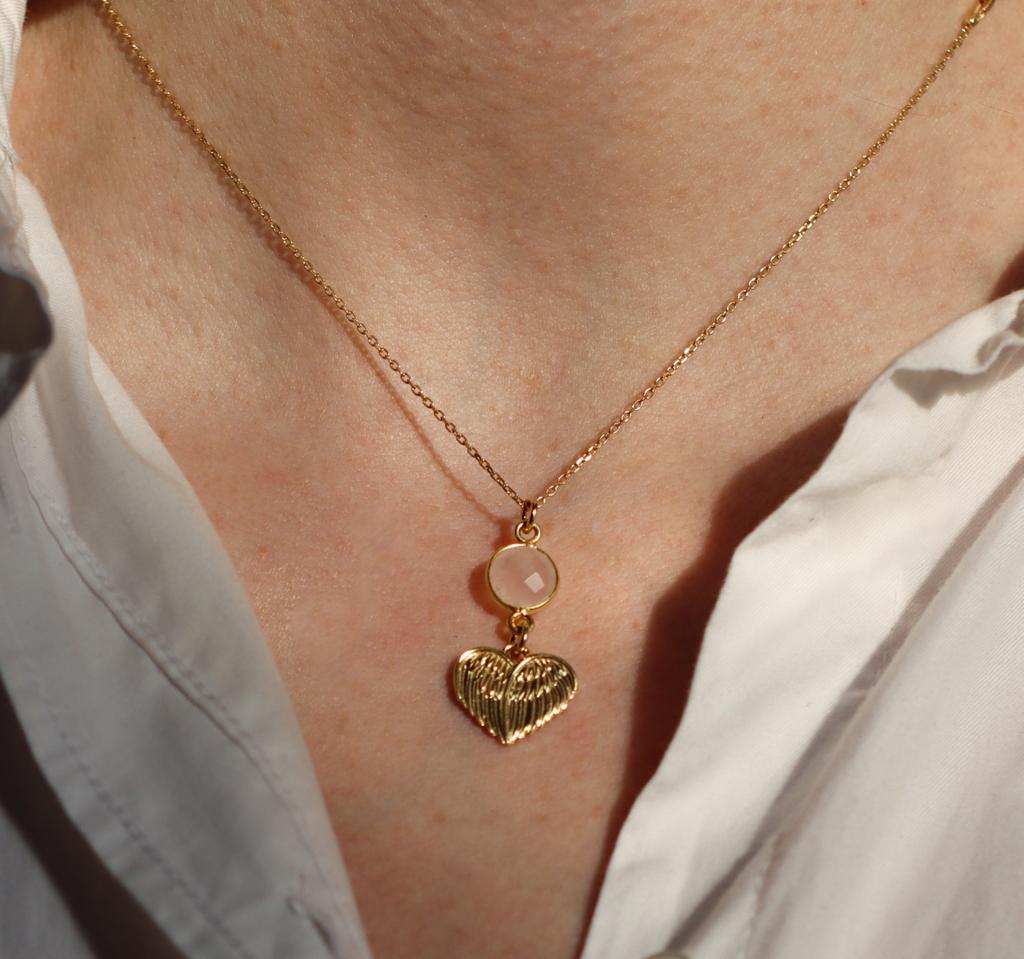 Naszyjnik Serce kwarc różowy srebro pozłacane lub klasyczne