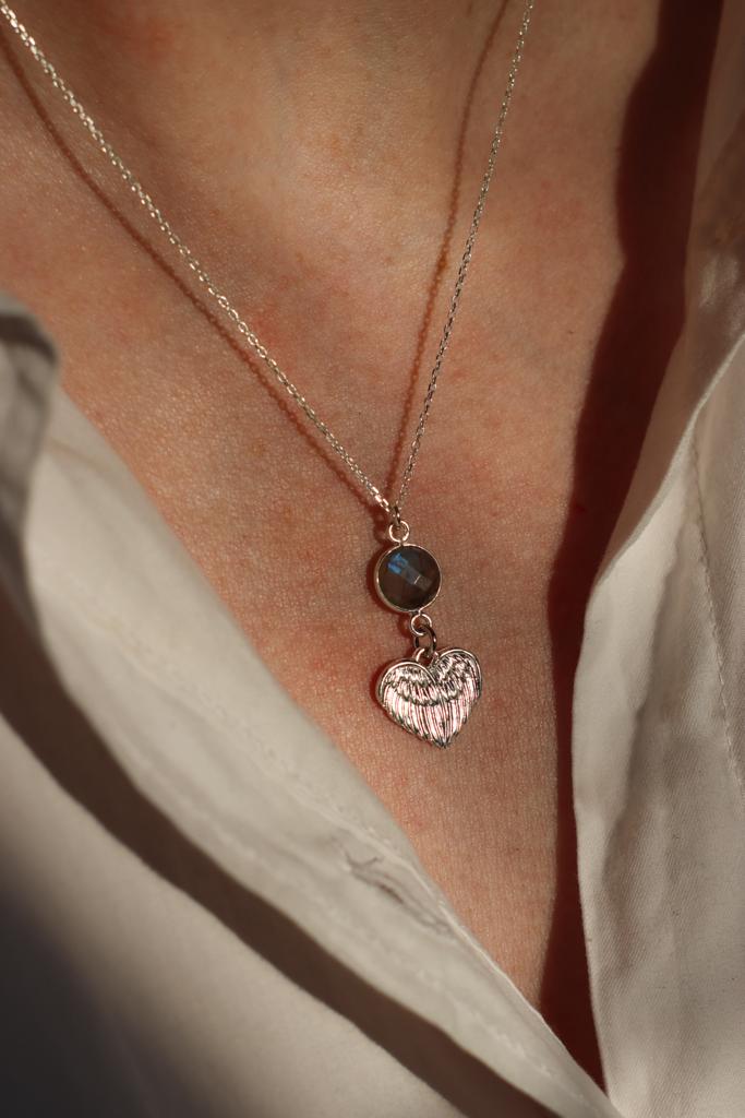 Naszyjnik Serce z labradorytem na łańcuszku ze srebra pr. 925