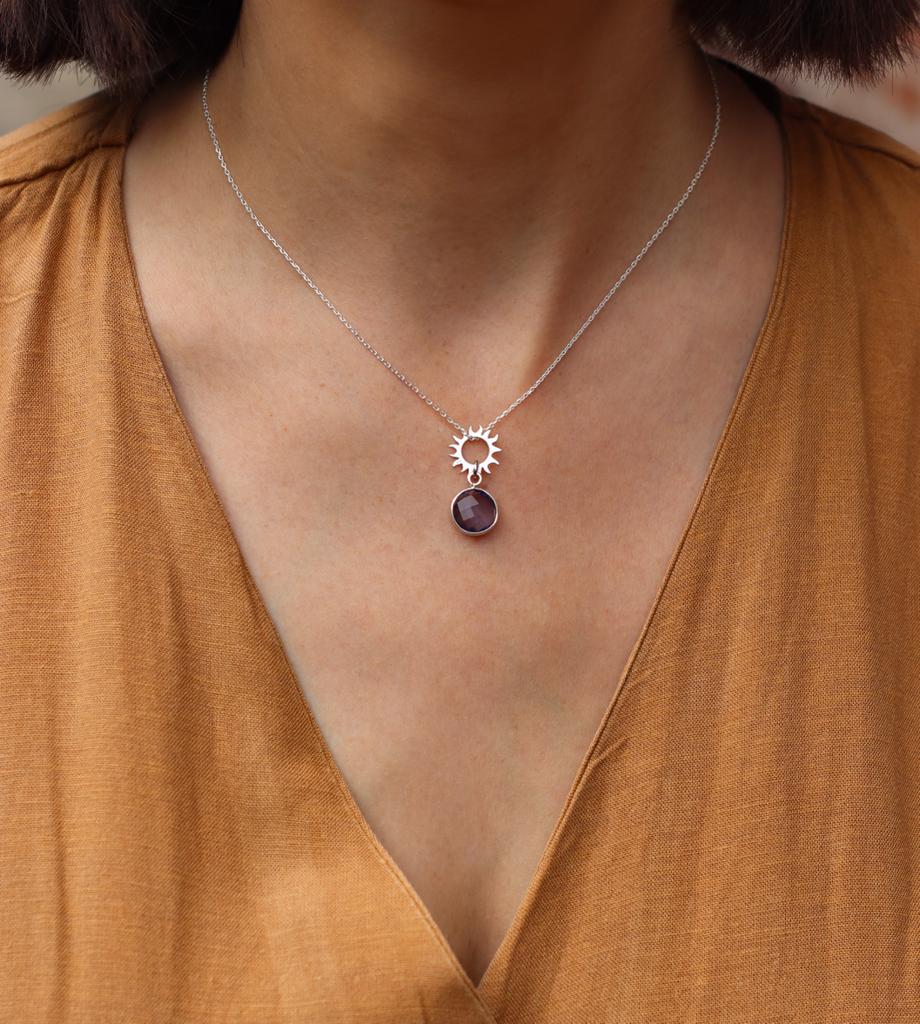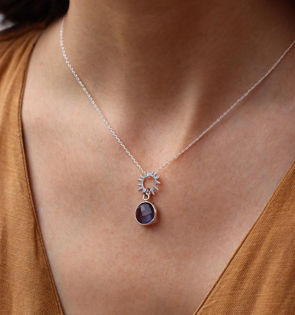 Naszyjnik Słoneczko ze srebra pr. 925 i ametystu