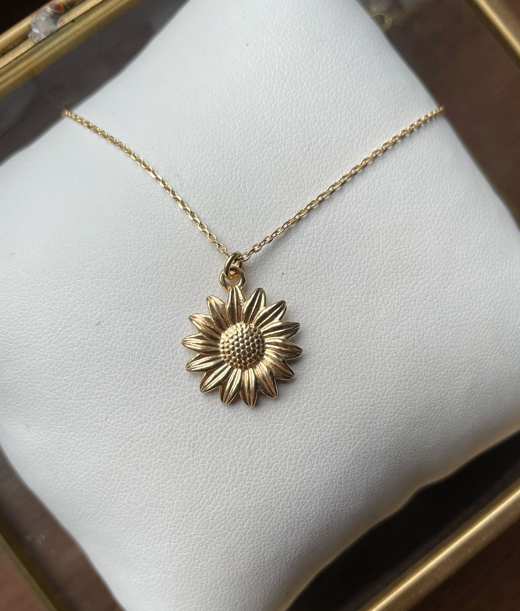 Naszyjnik ze srebra pr.925 z przywieszką w kształcie słonecznika.