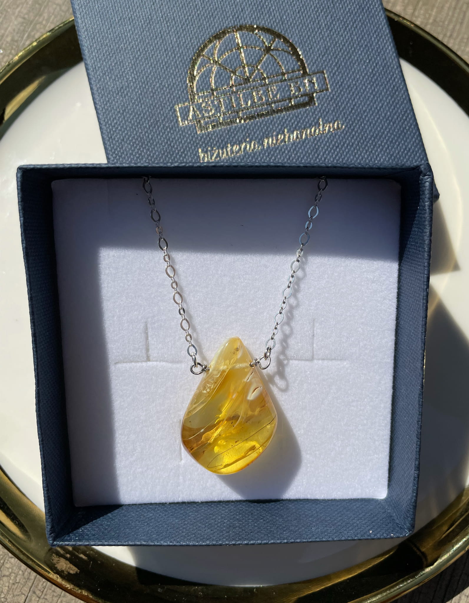 Naszyjnik z z naturalnym bursztynem na łańcuszku ze srebra pr. 925