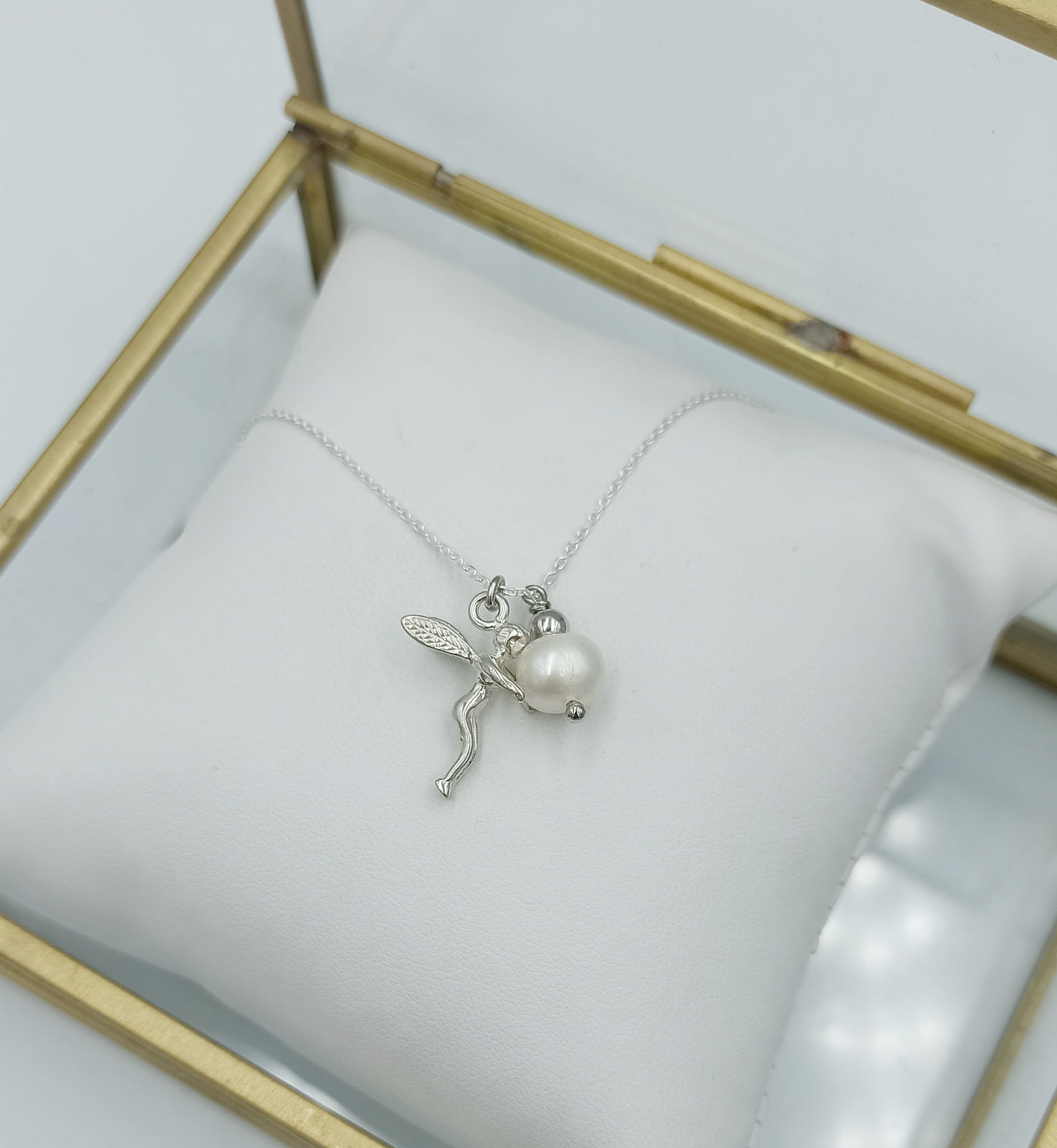 Delikatny naszyjnik ze srebra pr.925 z białą hodowaną perełką.