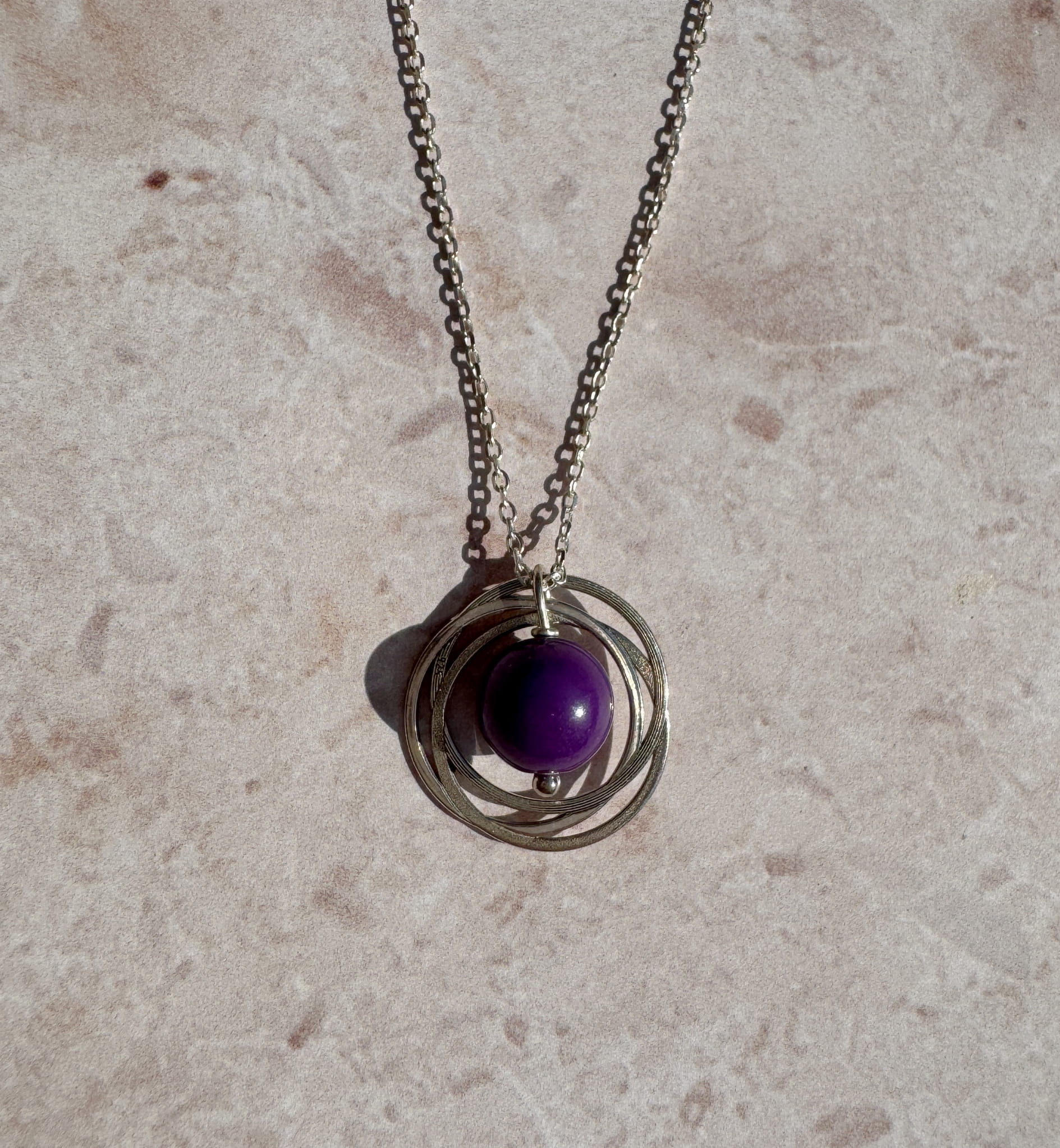 Naszyjnik z pięknego fioletowego fosfosyderytu oraz srebra pr. 925