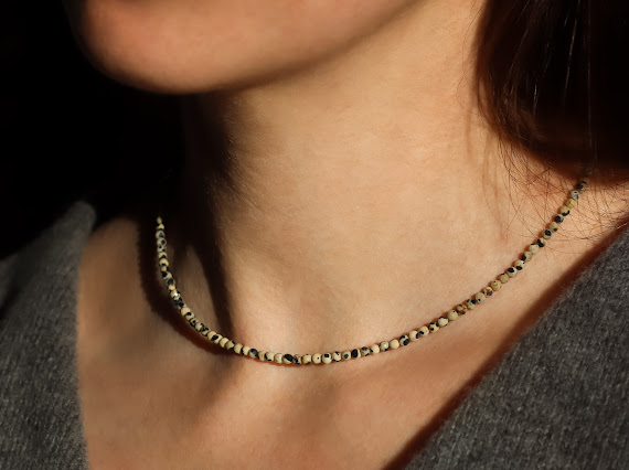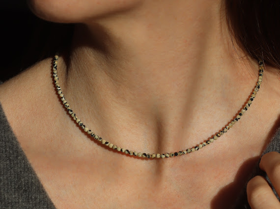 Naszyjnik z pięknych fasetowanych jaspisów dalmatyńskich i ze srebra pr 925