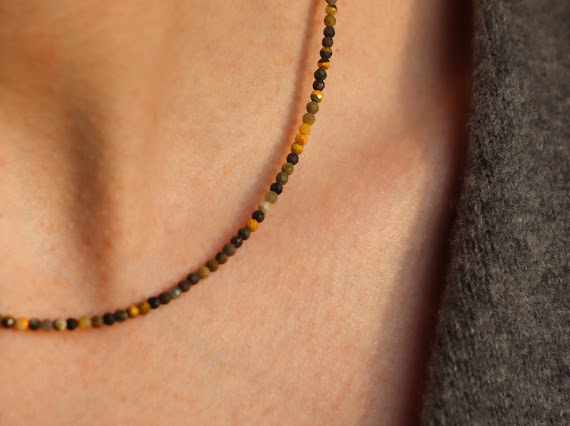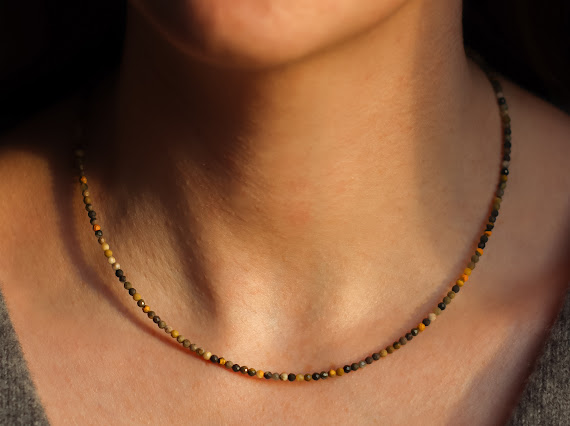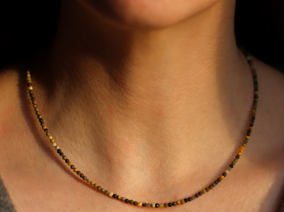 Naszyjnik z pięknych fasetowanych jaspisów trzmielich i ze srebra pr 925