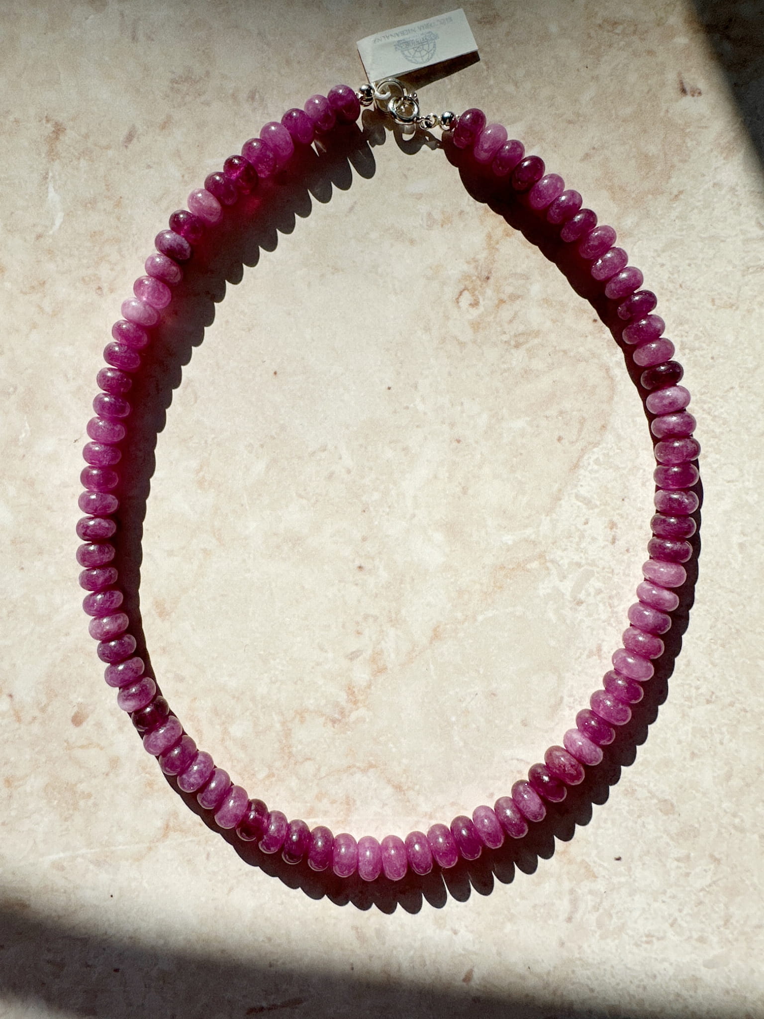 Piękny, ręcznie wykonany naszyjnik, w którym znajdziesz jadeity w odcieniu burgundu oraz zapięcie ze srebra klasycznego pr.925