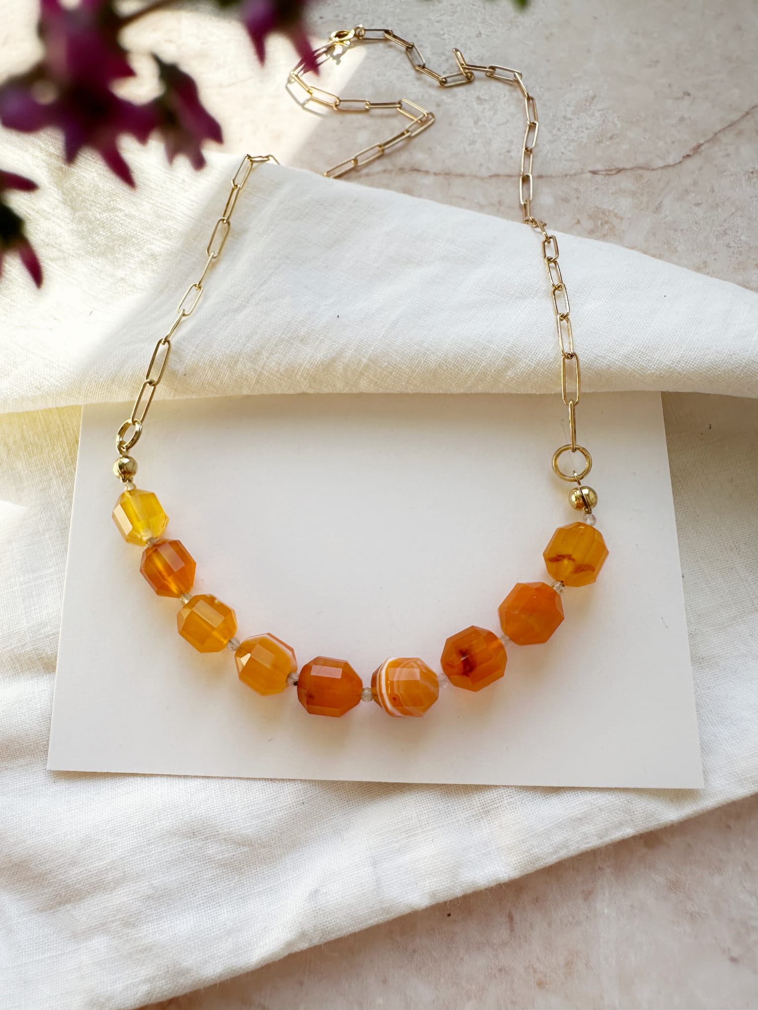 Naszyjnik klasyczny Candy pomarańczowy agat i drobny labradoryt