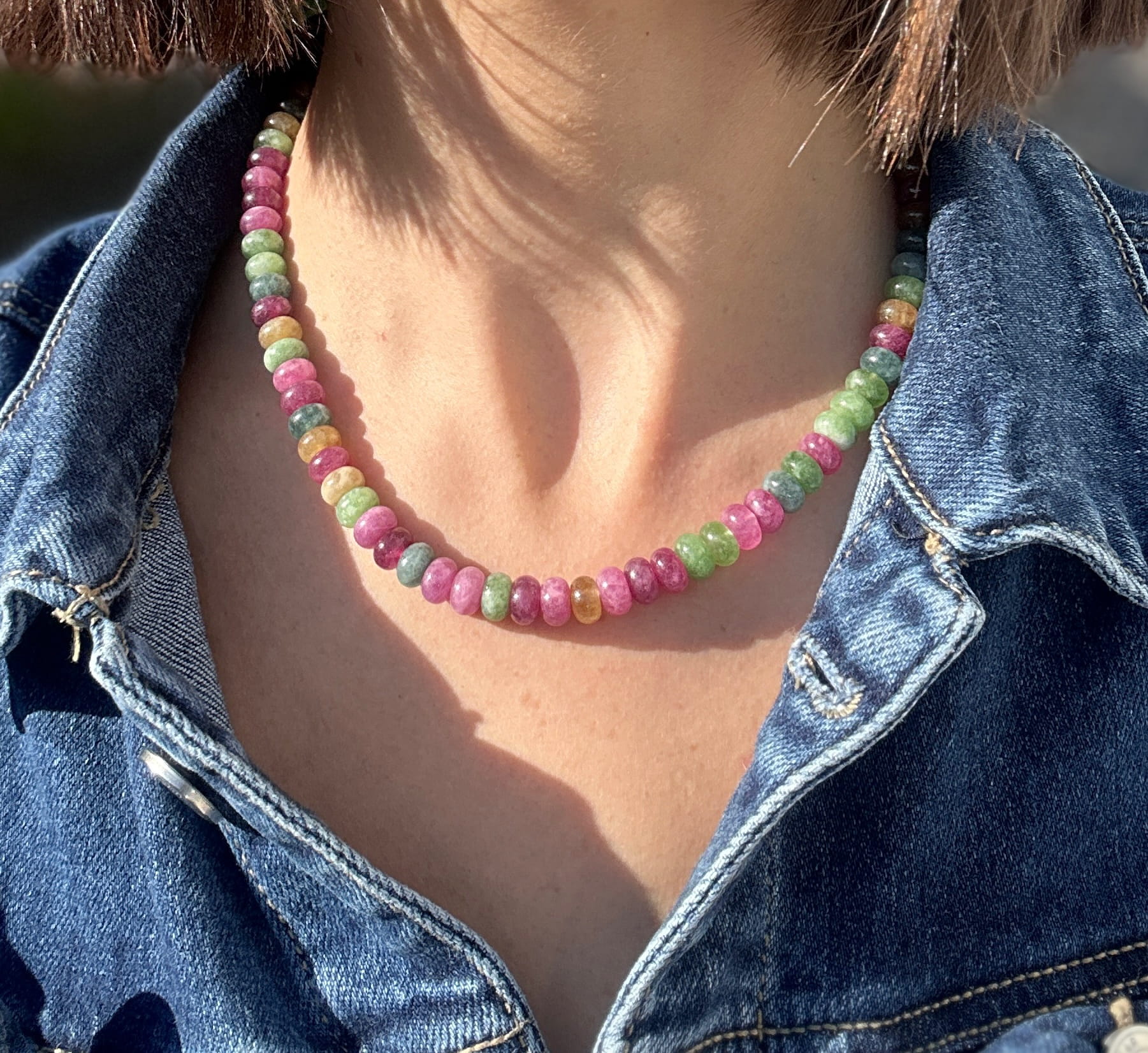 Piękny, ręcznie wykonany naszyjnik, w którym znajdziesz mix jadeitów w jesiennych odcieniach oraz zapięcie ze srebra klasycznego pr.925