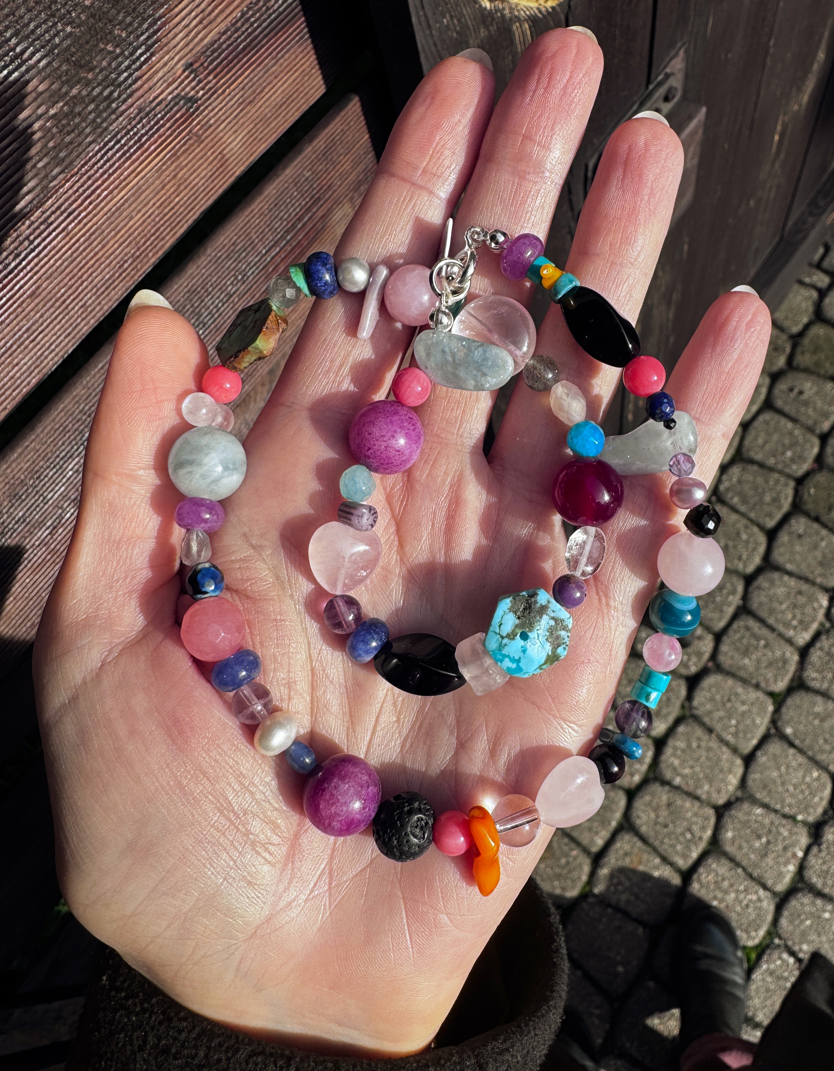 Piękny, ręcznie wykonany, niepowtarzalny naszyjnik, w którym znajdziesz kamienie naturalne oraz zapięcie ze srebra klasycznego pr.925