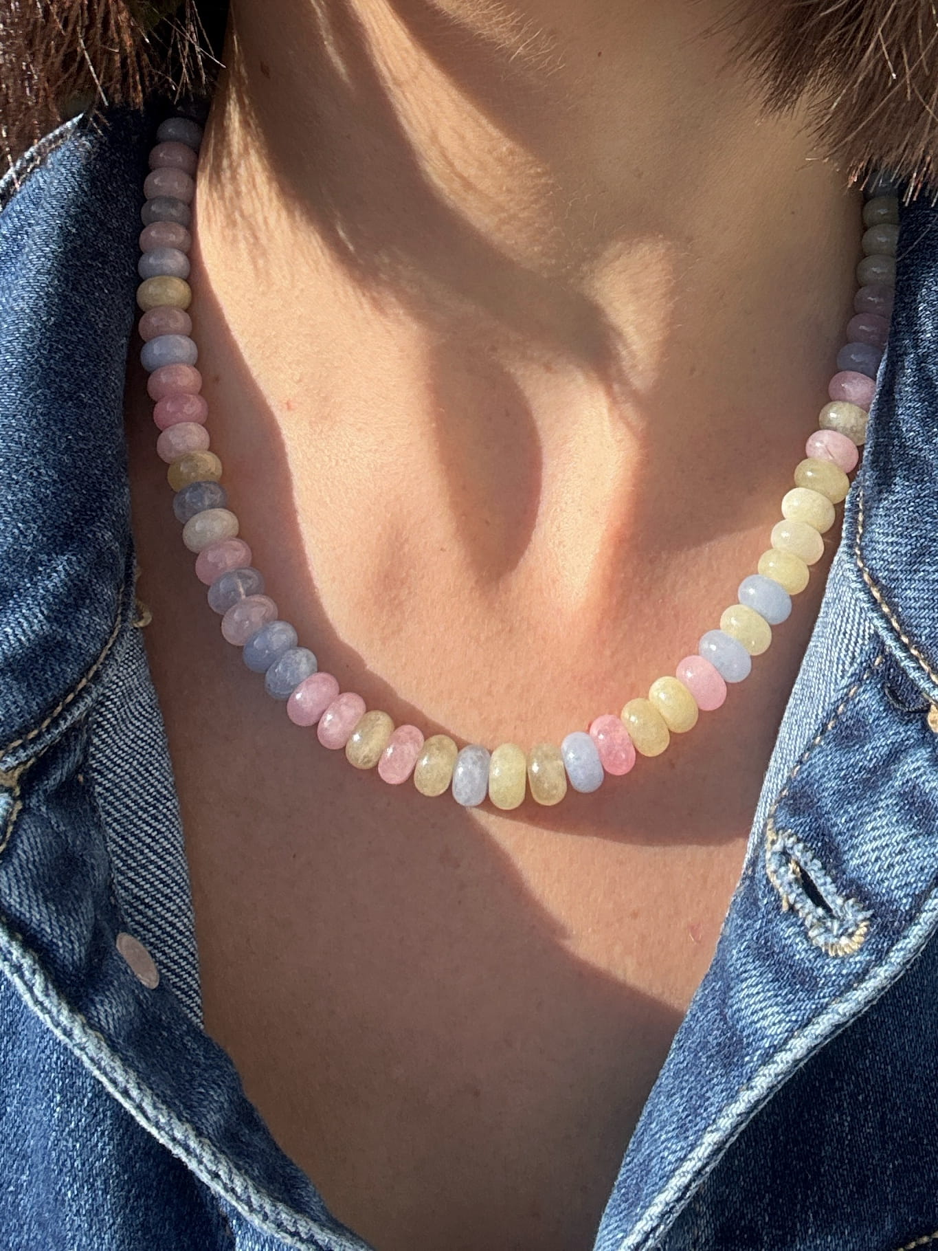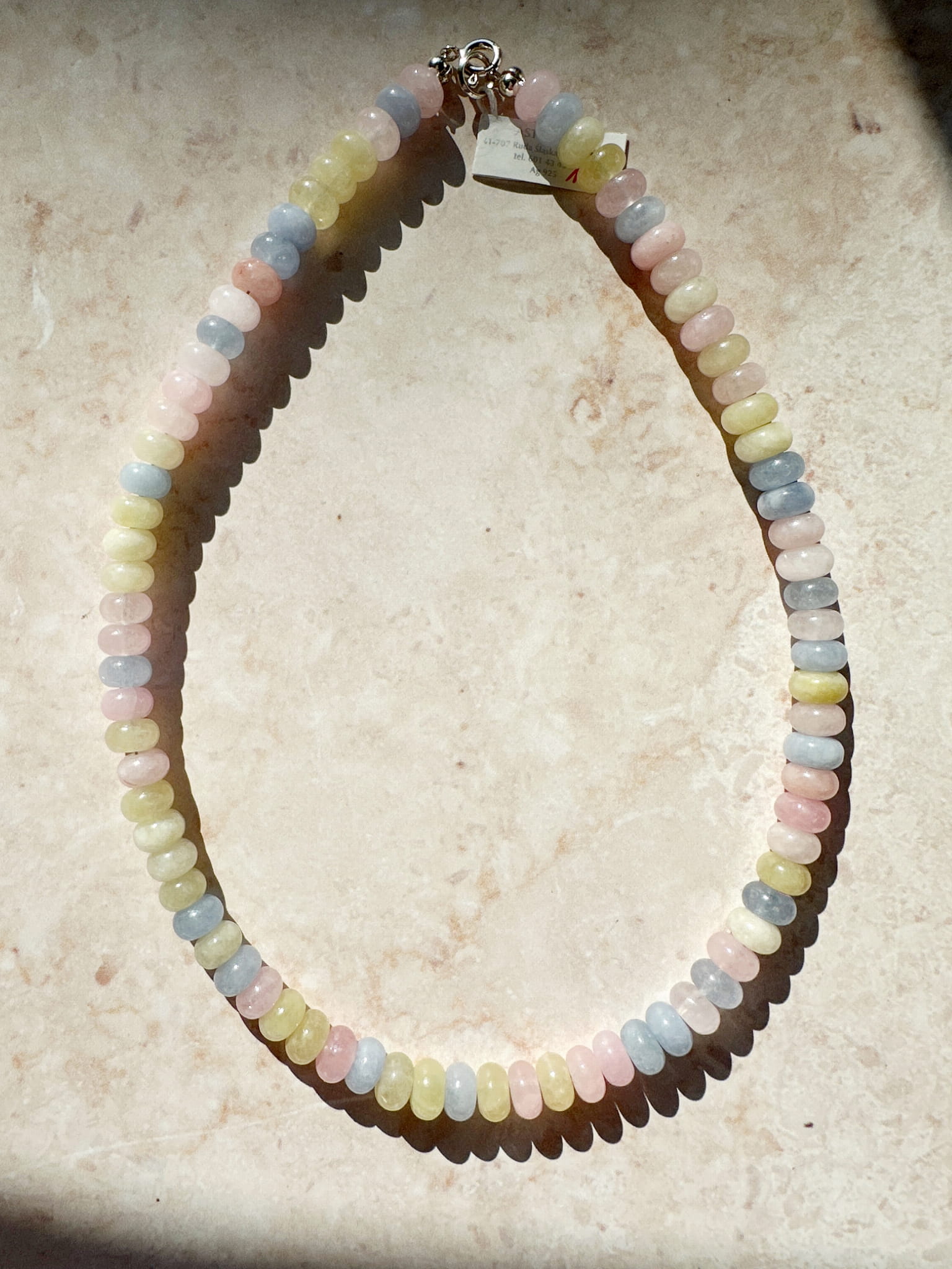 Piękny, ręcznie wykonany naszyjnik, w którym znajdziesz mix jadeitów w pastelowych odcieniach oraz zapięcie ze srebra klasycznego pr.925